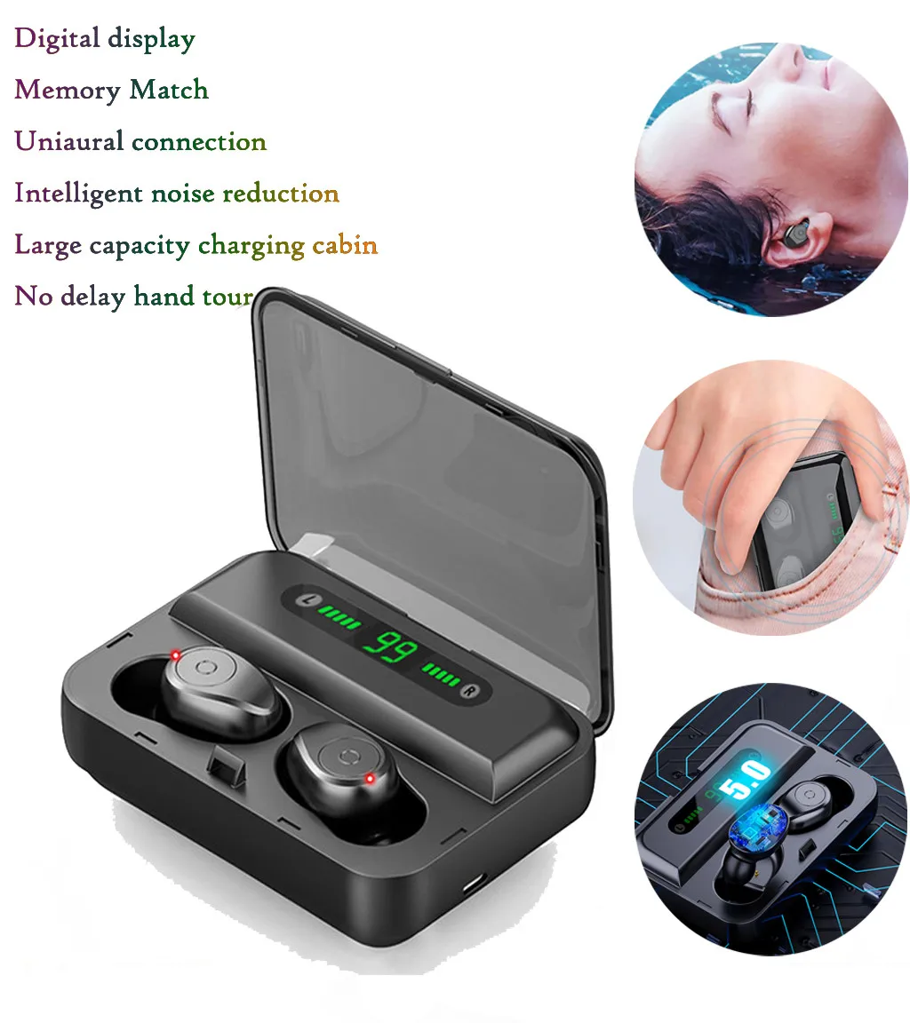 TWS Bluetooth наушники с микрофоном светодиодный дисплей беспроводные Bluetooth наушники Наушники Шум шумоподавления гарнитуры