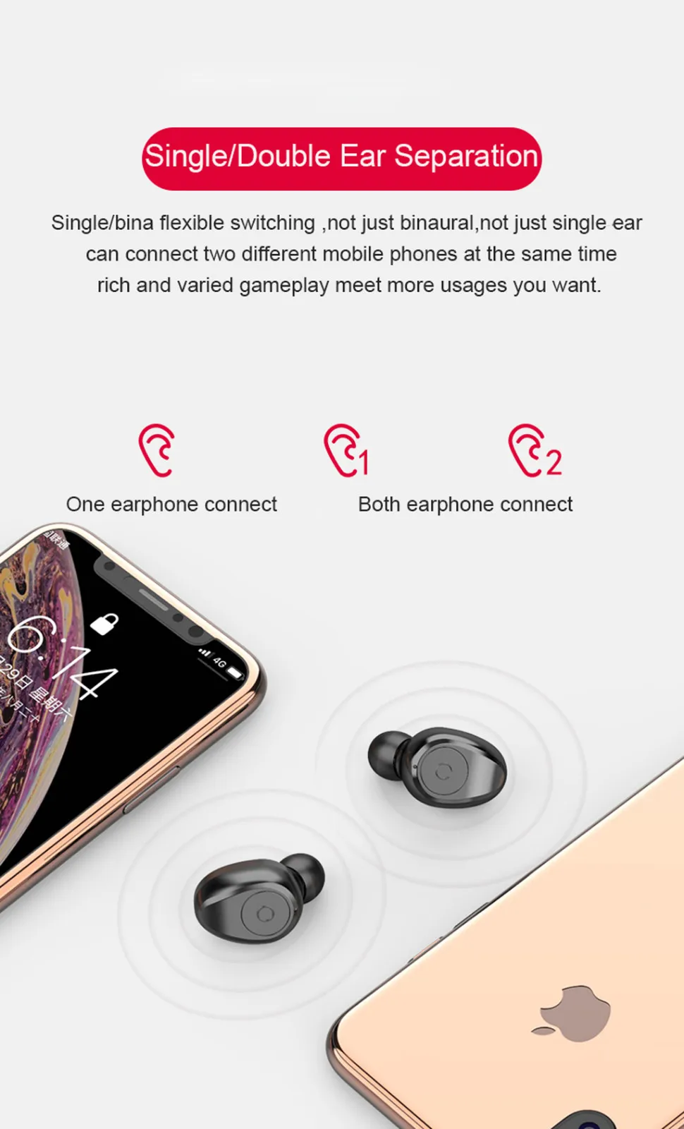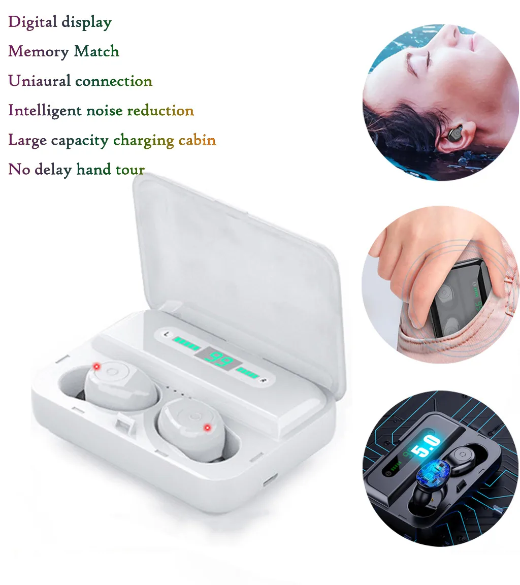 1. 8D объемный звук, 5,0 бинауральный чип, настоящая Беспроводная bluetooth-гарнитура