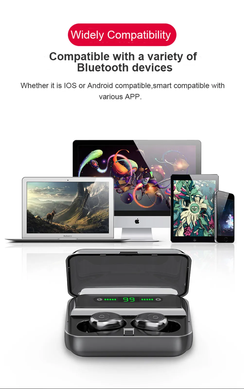 3. Светодиодный интеллектуальный цифровой дисплей, 80 часов дополнительного воспроизведения, 60 минут