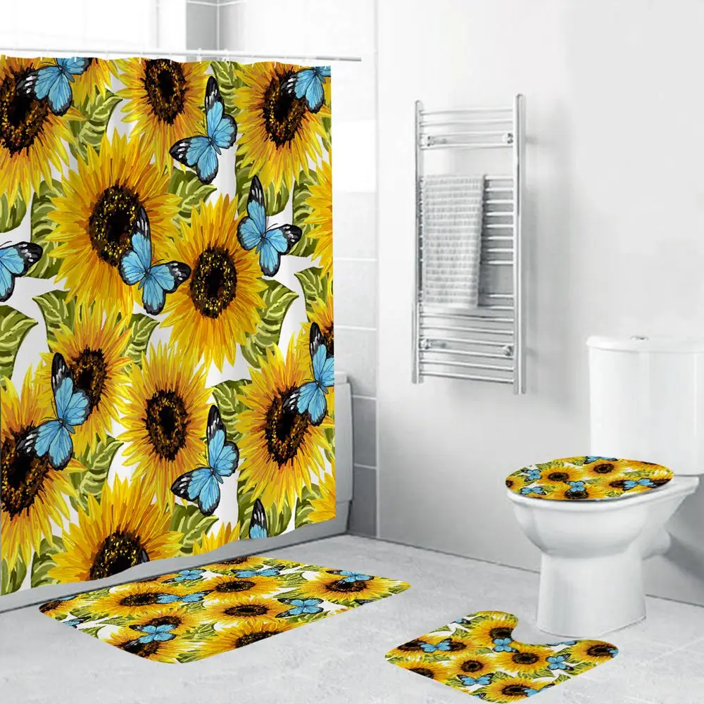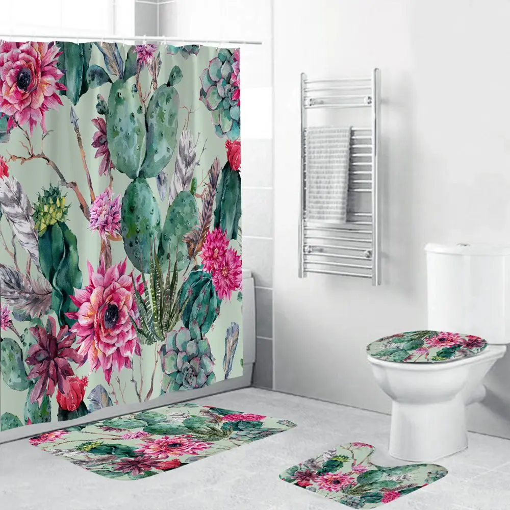 Dafield набор для ванной с душевой занавеской и ковриками, набор ковриков, Цветочный декор, водонепроницаемая Нескользящая занавеска для ванной