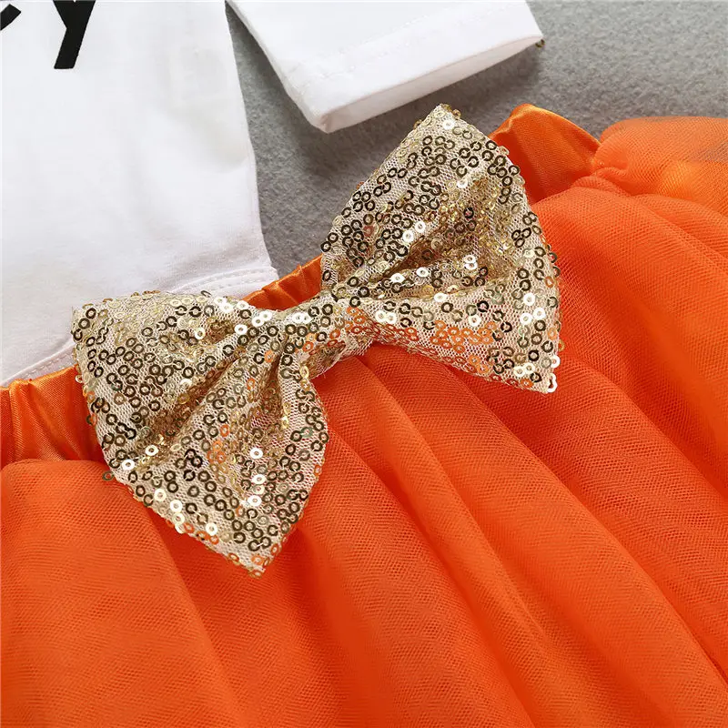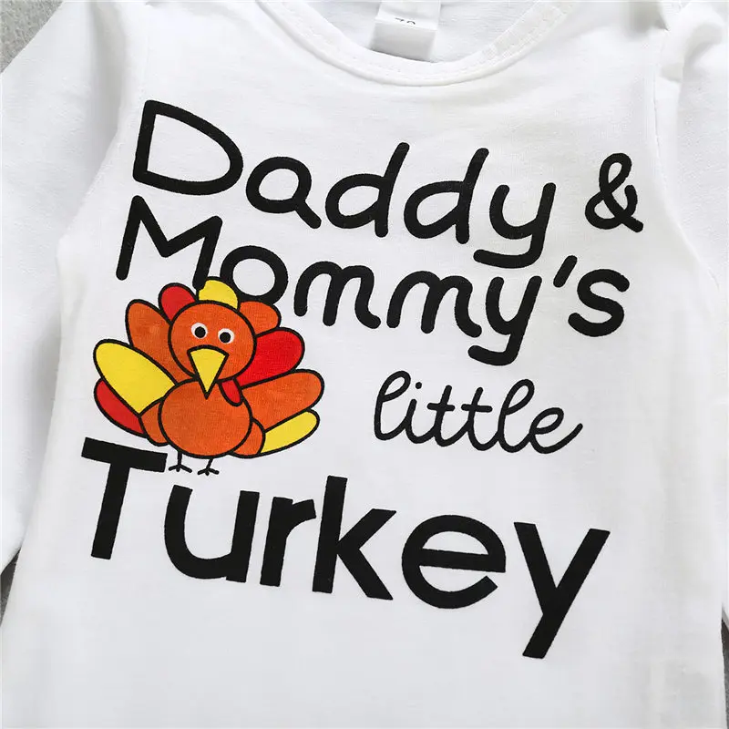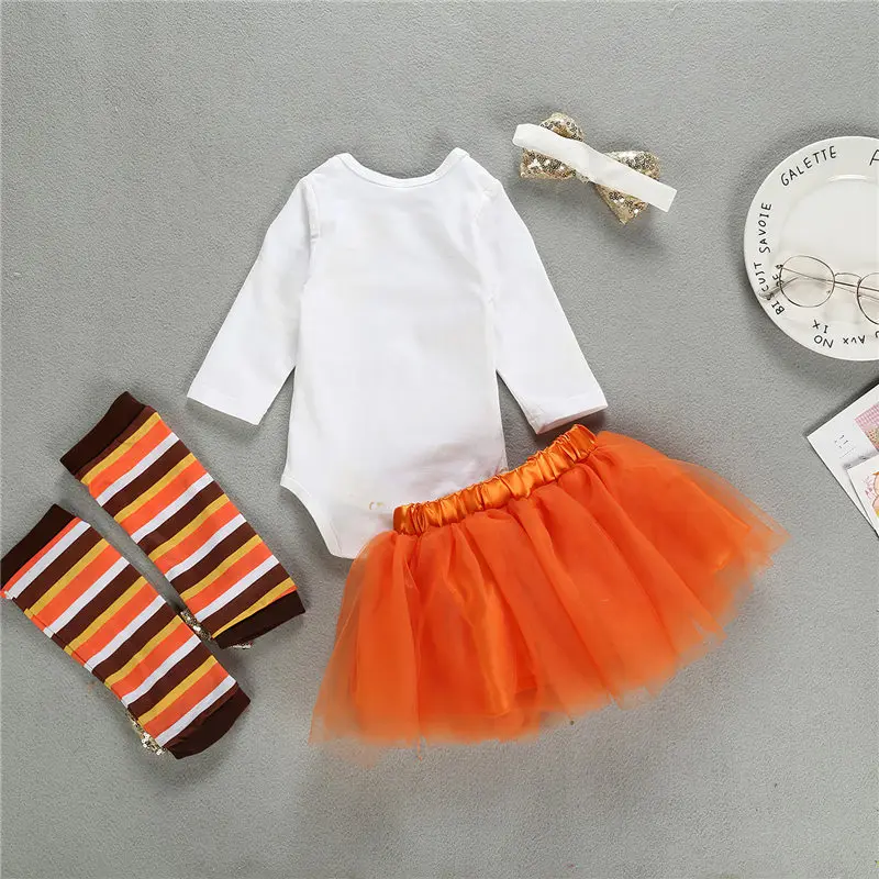 Комплект одежды для маленьких девочек; хлопковый трикотажный комбинезон для отдыха с принтом и юбка-пачка с бантом и головной убор; костюм на День Благодарения