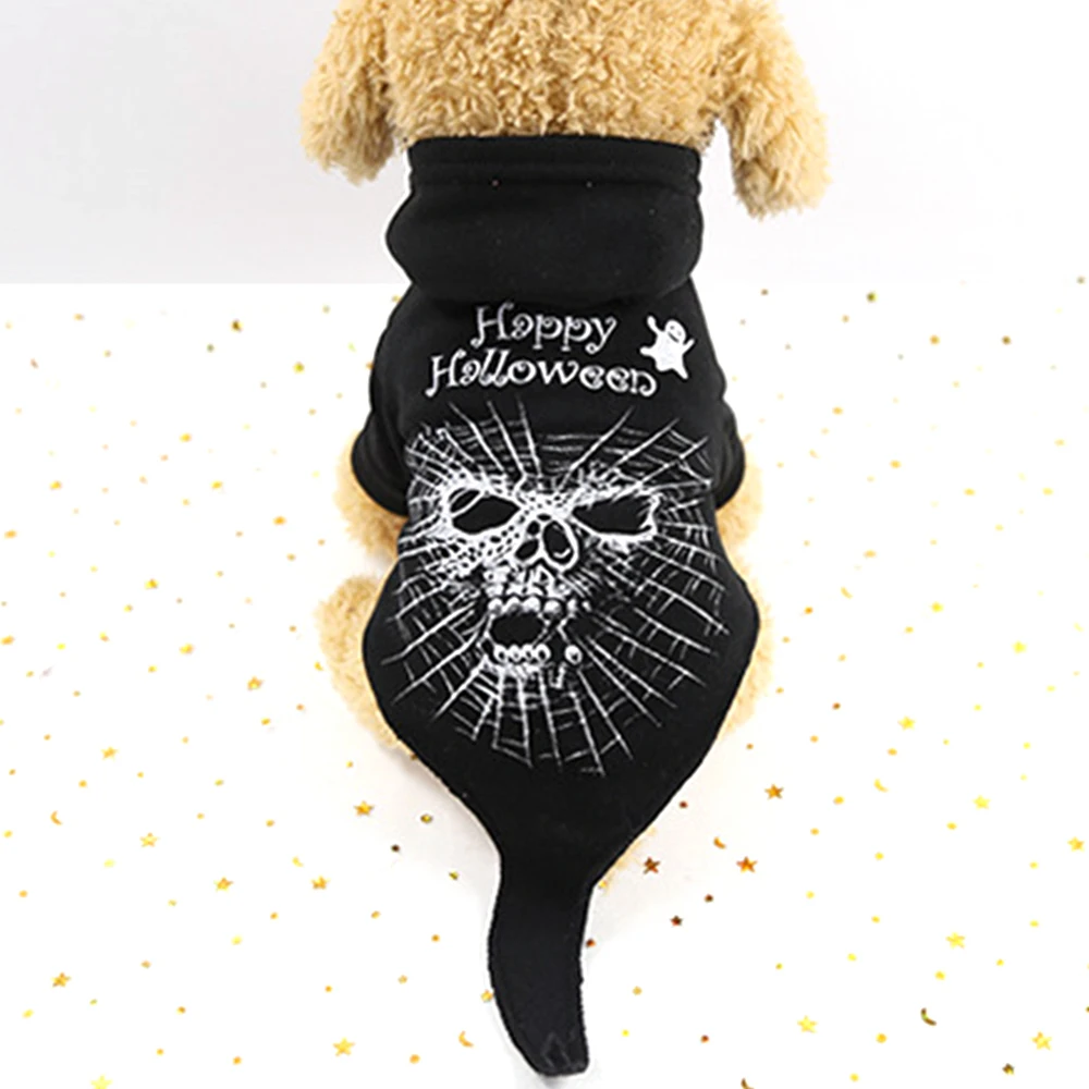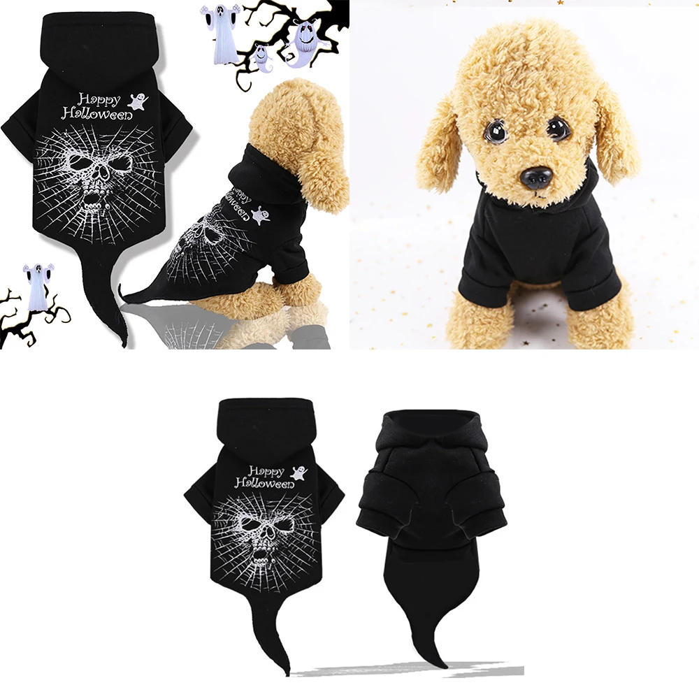 Одежда для домашних животных Хэллоуин Забавный Череп Костюм для кошки, собаки черный флис собака щенок котенок толстовки свитер зимняя теплая одежда для маленьких собак 25A