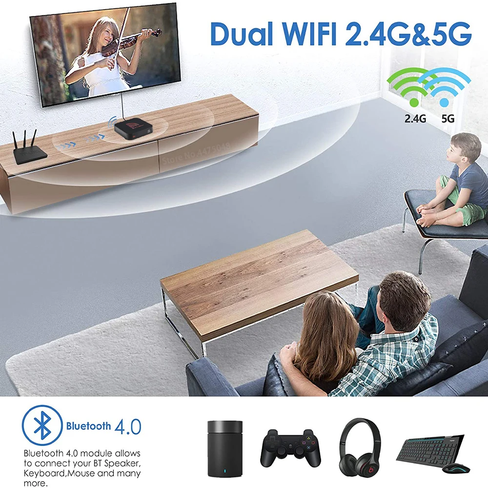 1. ТВ-приставка Android 9,0 2. Стандартный пульт дистанционного управления голосом синего зуба 3. 4K 30fps/HEVC H.265/1080P/MPEG-4 фильмы 4. Amlogic S905W 2GBRAM + 16GBROM 5. Встроенный Wifi 2,4G/5G, 802.1.1b/g/n/ac 6. Система является GT UI, GTStore Addons предустановленной 7. Skype Чат, Picasa, Youtube, мерцание, Facebook, онлайн фильмы и т. Д.
