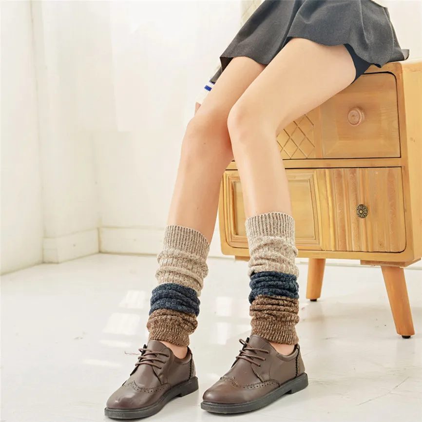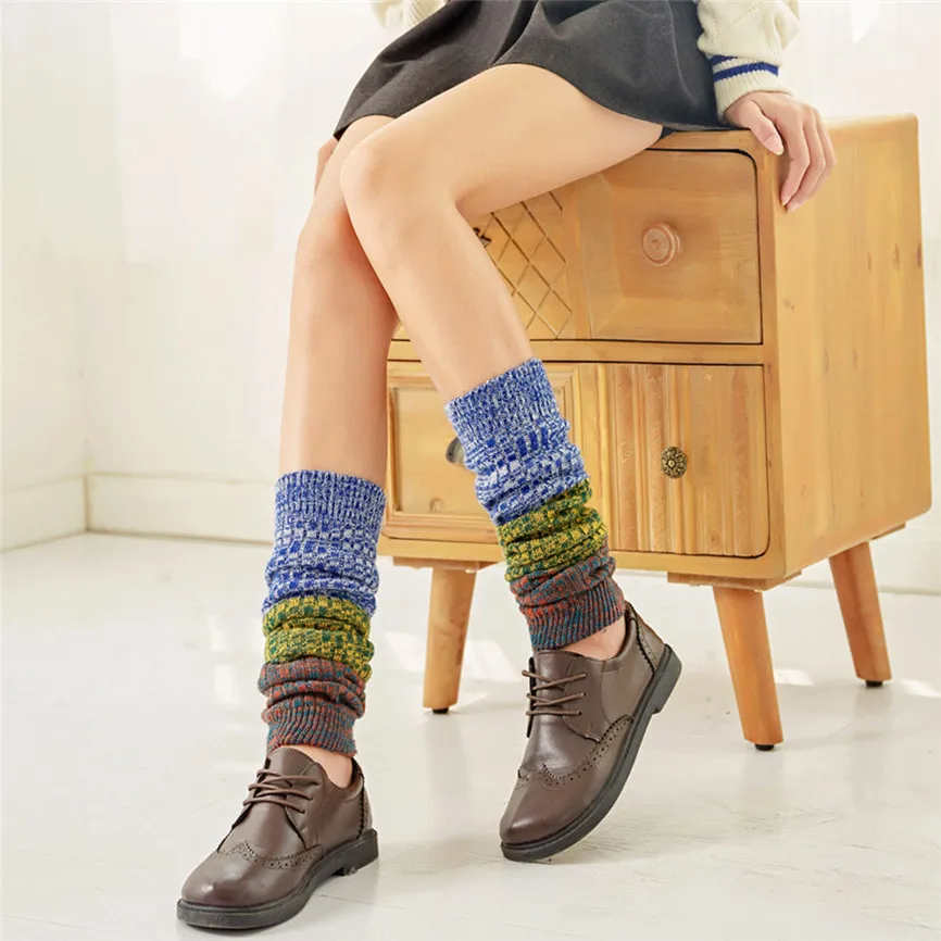 Женские гольфы выше колена длинные однотонные Гольфы теплые Нескользящие бархатные носки для девочек вязаные шерстяные носки-леггинсы