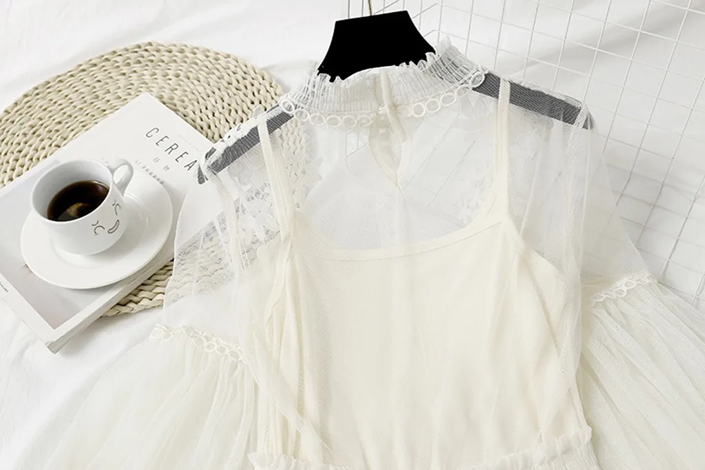 Женский модный цветок Платье с вышивкой и рукавами-фонариками; Платье из двух предметов на пуговицах