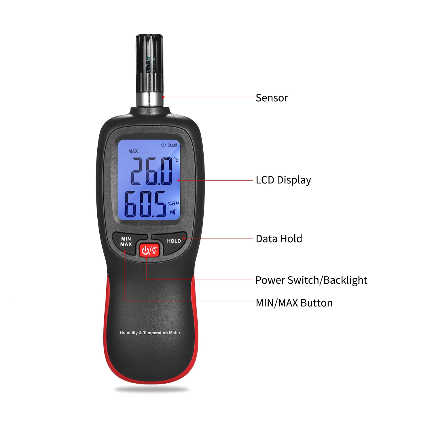 Цифровой измеритель влажности и температуры используется для широкого спектра применений, таких как промышленность, сельское хозяйство, метеория, медицина, повседневная жизнь, инженер-строитель, в винном погребе, машинном помещении и хранилище данных.