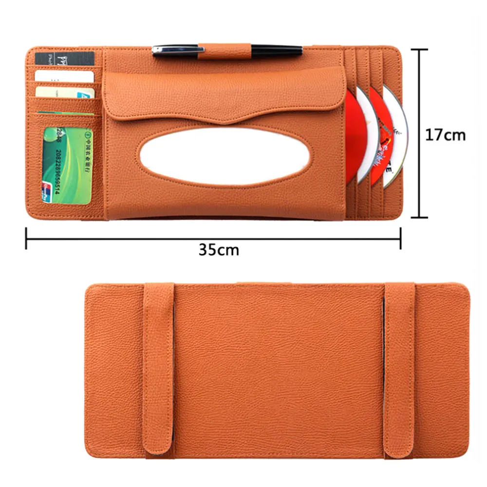 - 4 pockets for business or credit cards on the left, 1 tissue holder & 1 pen holder in the middle and 4 pockets for CD card on the right.
