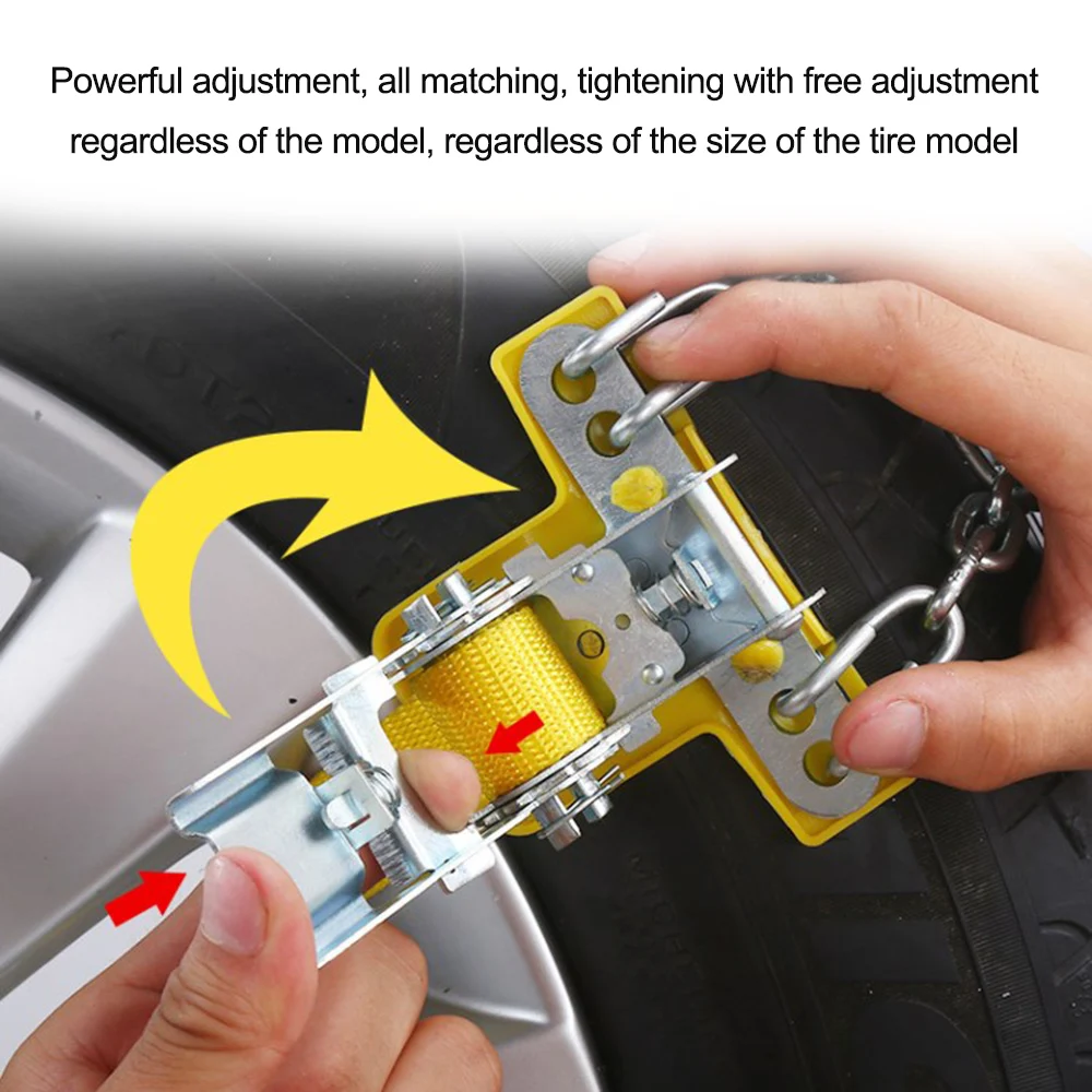 Затягивающий ремень можно легко отрегулировать, чтобы он подходил для большинства размеров шин.