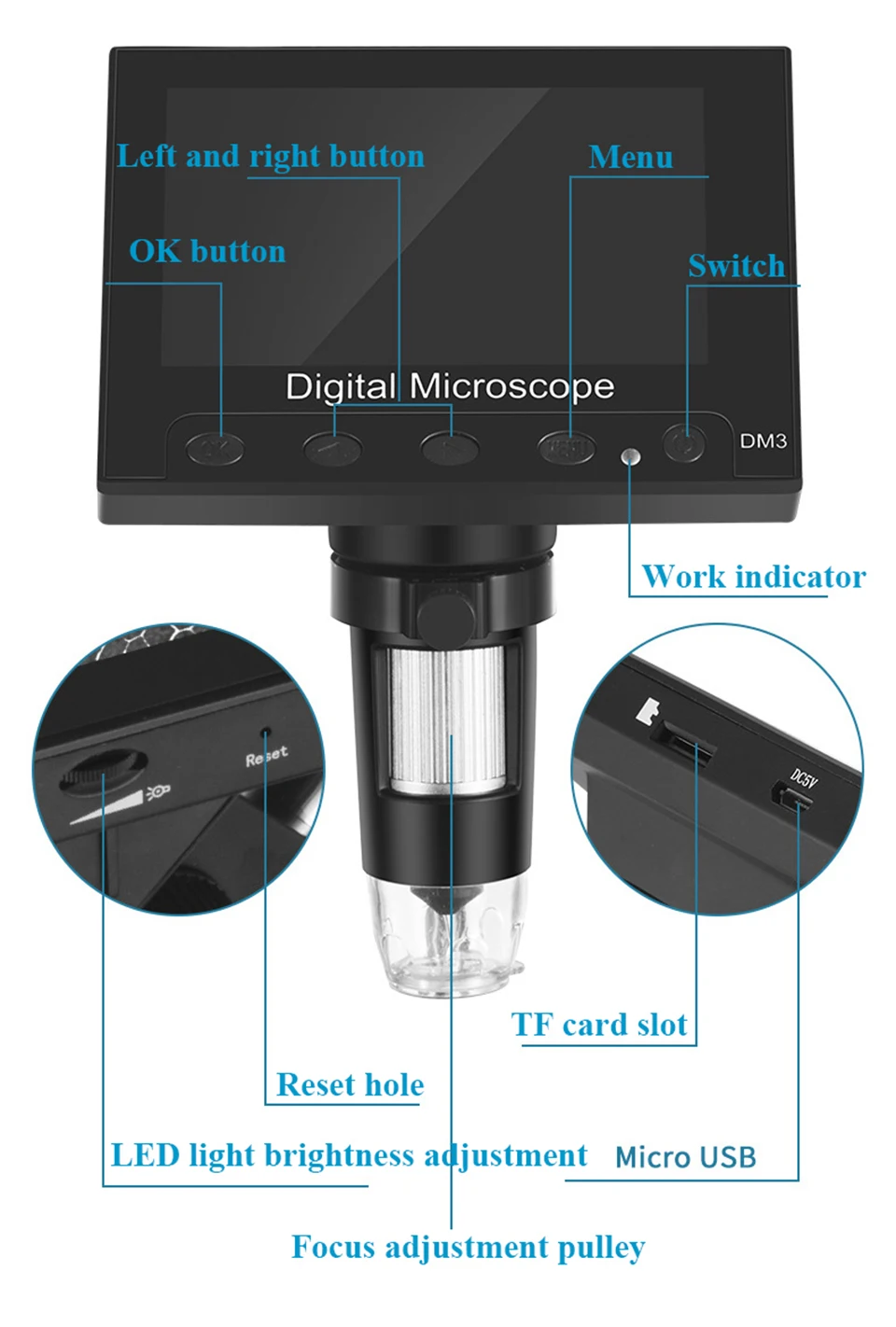 1. Полные функции, четкое изображение, тонкая работа, замена батареи, подключение к компьютеру, компактный и портативный, поддержка до 12 языков и т. д.