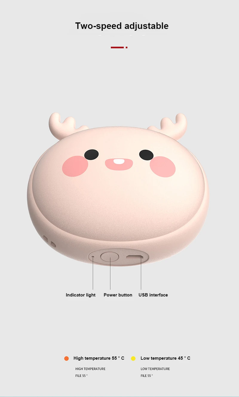 Удерживающие тепло в ваших руках 1. Вы можете сделать грелка для рук, и вы можете сделать внешний аккумулятор. 2. Двусторонняя отопление, два в зависимости от температуры 3. Маленький размер, легко носить с собой 4. Зарядка через USB, универсальный