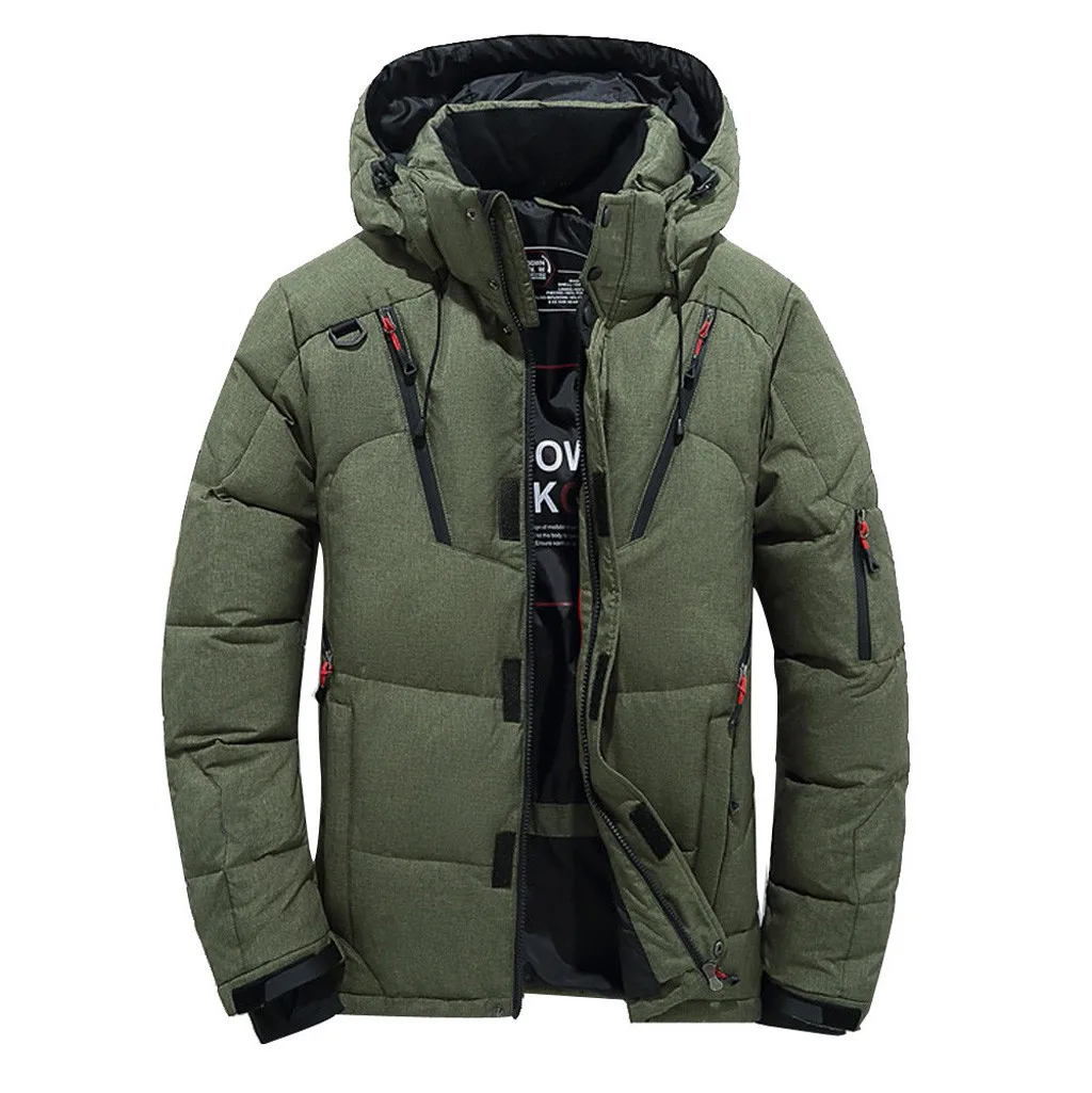 Мужское зимнее пальто на молнии, Высококачественная теплая плотная верхняя одежда, куртка для мальчиков, повседневный теплый топ с капюшоном, Мужская теплая белая блуза на утином пуху