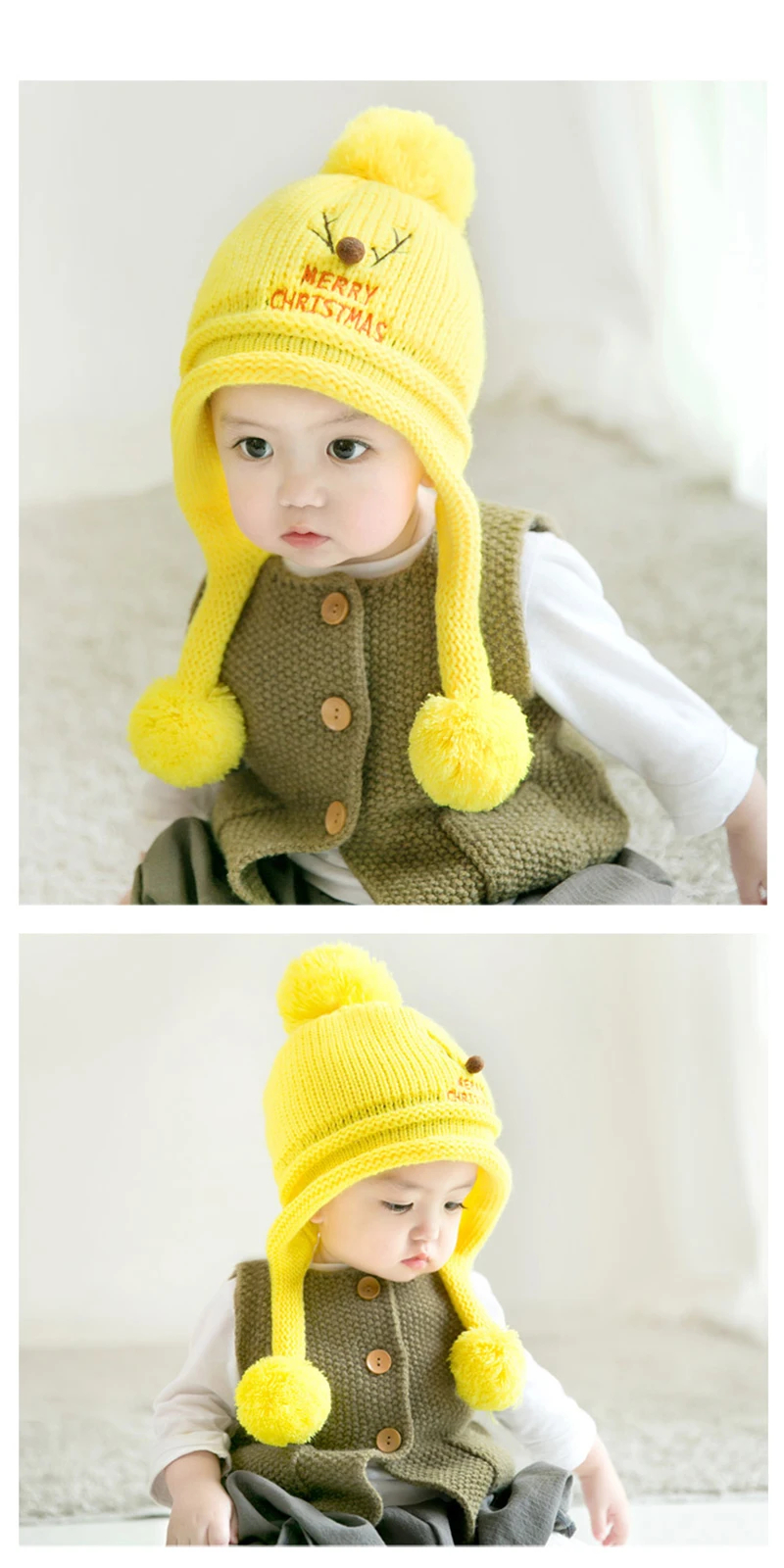 Новые рождественские детские плюшевые шапки с помпоном, вязаные хлопковые шапки, теплые шапки, мягкая шапка для новорожденных девочек и мальчиков, шапка на осень и зиму