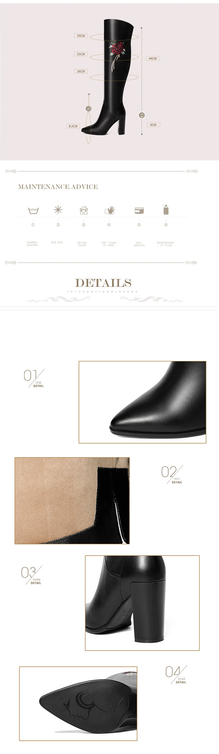 Типы цветов: белый и черный Размер: 34-39 Материал верха: Воловья кожа Внутренний материал: байка Высота каблука: 9 см Примечание: указанные выше данные измеряются по стандарту 36 размера (1,5).