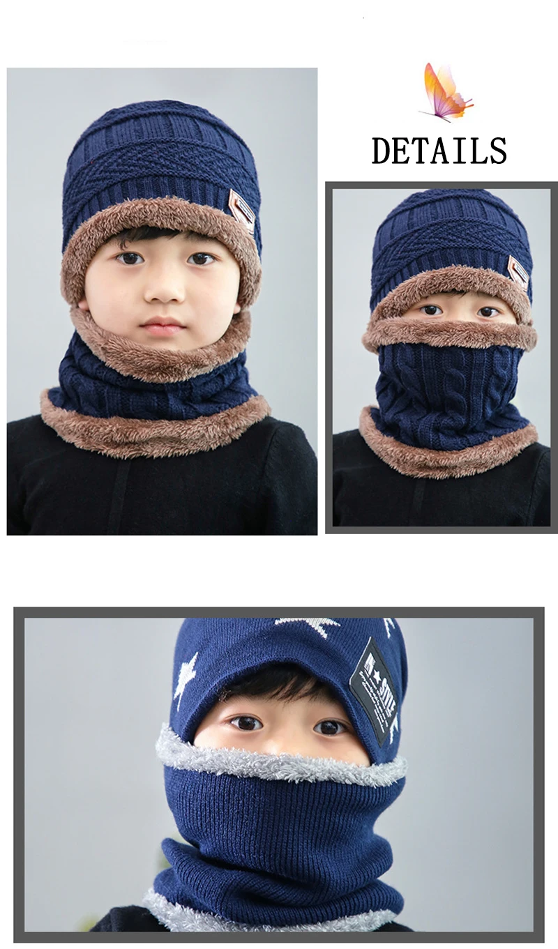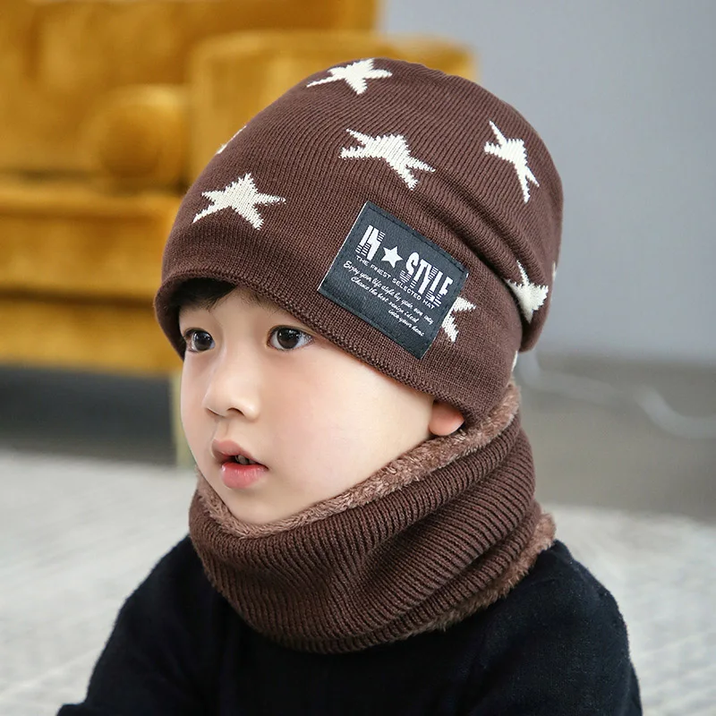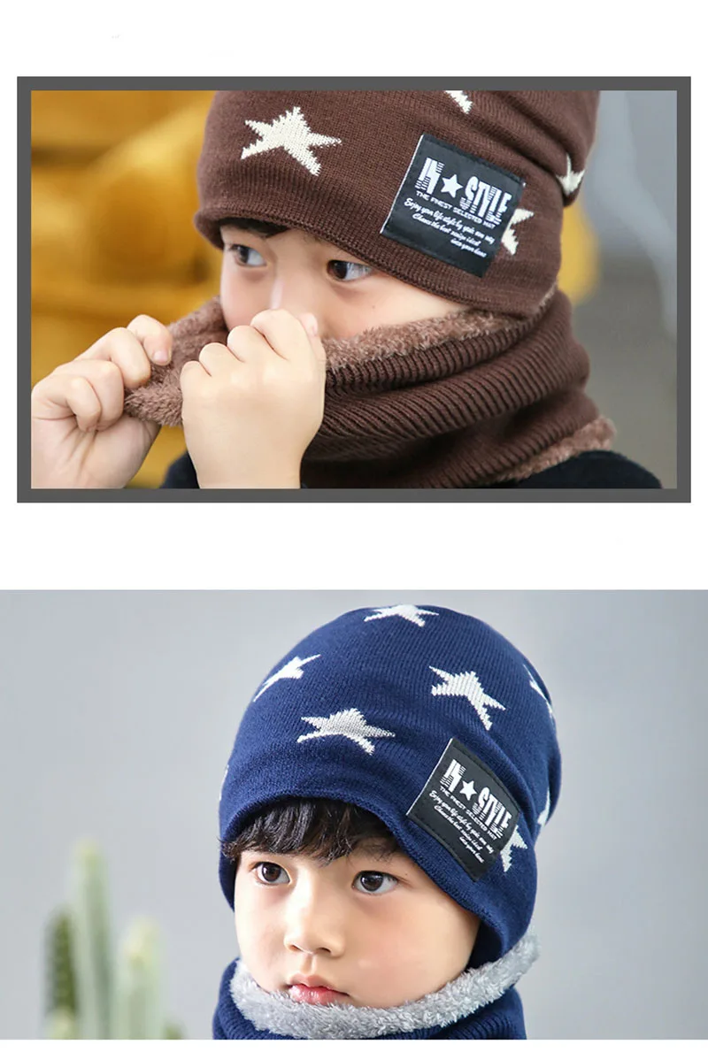 2Pcs/Set Knitted Baby Hats Scarf Five Star Beanie Cotton Warm Fur Caps Soft Hat For Childern Girls Boys Beanies Autumn Winter