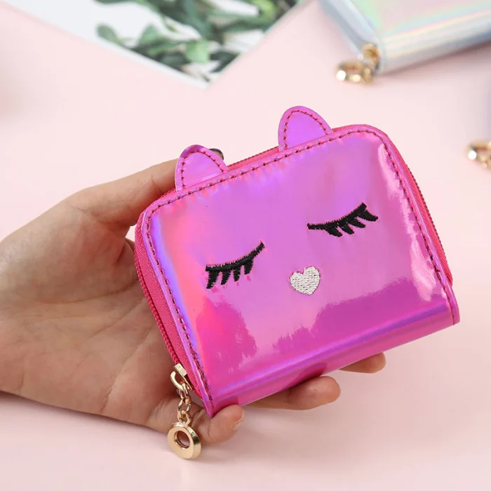 Недавно голографический кошелек с животным котенком маленький короткий кошелек портмоне для женщин и девочек DOD886