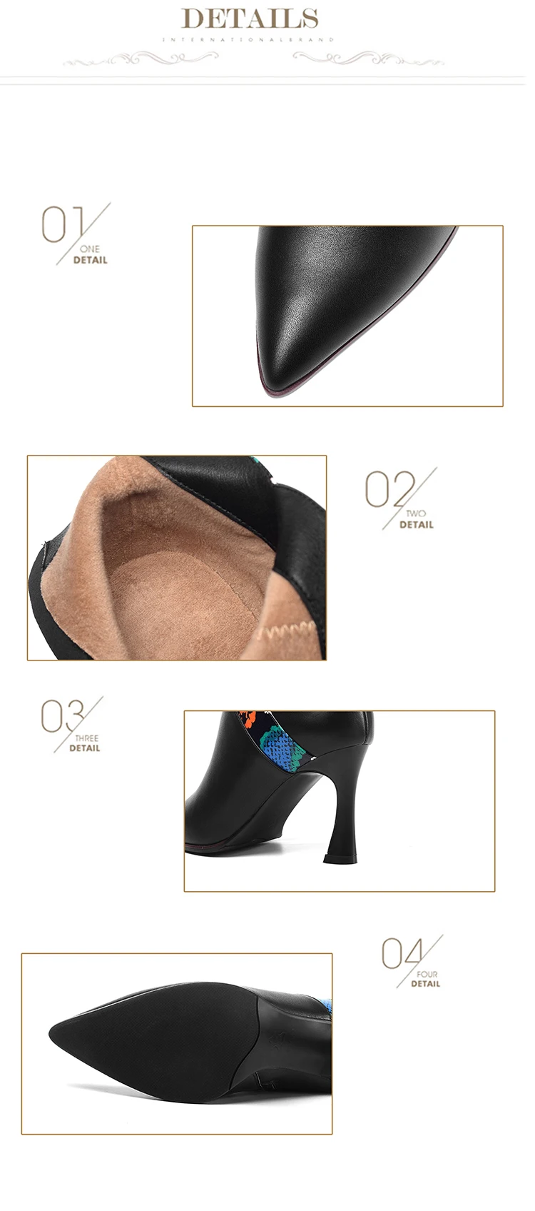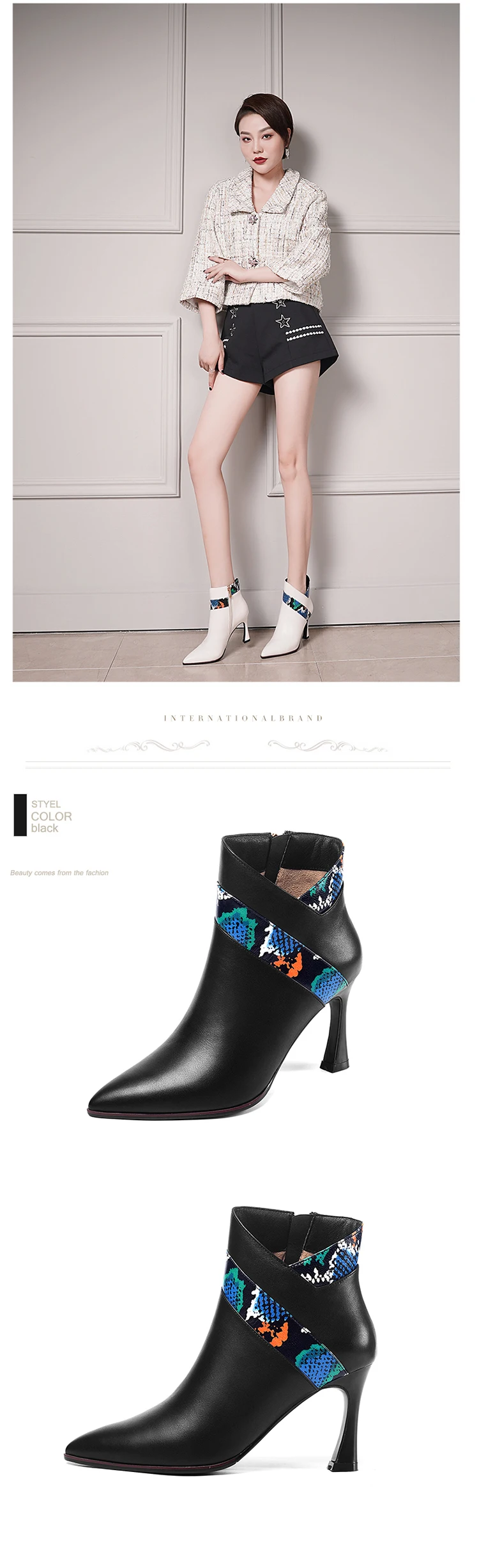 Типы цветов: белый и черный Размер: 34-39 Материал верха: Воловья кожа Внутренний материал: байка Высота каблука: 8 см Примечание: указанные выше данные измеряются по стандарту 36 размера (1,5).