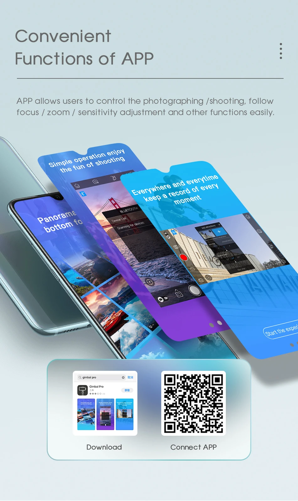 В: почему теряет баланс через некоторое время или теряет Bluetooth подключение через некоторое время? О: Установите неправильный способ, потому что Включите карданный шарнир без регулировки баланса. Вопрос: Почему gimbal & phone всегда не может сбалансировать? Как решить проблему? A: Включите gimbal после регулировки баланса В: почему Кнопка shoot не работает? О: не подключал Bluetooth. Подключите его, затем он работает. В: почему я не могу узнать Bluetooth connect singla в приложении? Ответ: телефон уже подключен к другому bluetooth-устройству. Отмените его, затем повторите попытку. В: есть ли другие приложения для управления карданный шарнир, такие как facebook, youtube? О: Нет, у них нет разрешения Bluetooth для подключения к кардану. Но вы можете использовать gimbal без подключения Bluetooth. В: работает ли S5 при температуре ниже-10 'C? О: Да, но карданный шарнир S5 должен быть включен в помещении. В: какой смартфон поддерживает? О: более 99.5% смартфонов android и IOS с поддержкой S5 Gimbal. Iphone серии, которые IOS.10.0 или более новые. Такие как iphone 5s ,iphone6/7/8/s/plus, телефон X/XS/Max Android 5,0 или более новая, ОЗУ Больше 2 ГБ. В: Каковы несовместимые модели смартфонов? О: Как мы знаем, Xiaomi redmi note4x,note 7 pro,note 8,note 9 pro и remi mi 9T несовместимы В: Какой максимальный размер он поддерживает? A: полноэкранный смартфон: 6,5 дюймов; Другие розетки: 6,3 дюймов. Длина <165 мм, ширина <85 мм В: Какой максимальный вес он поддерживает? О: поддержка до 230 г