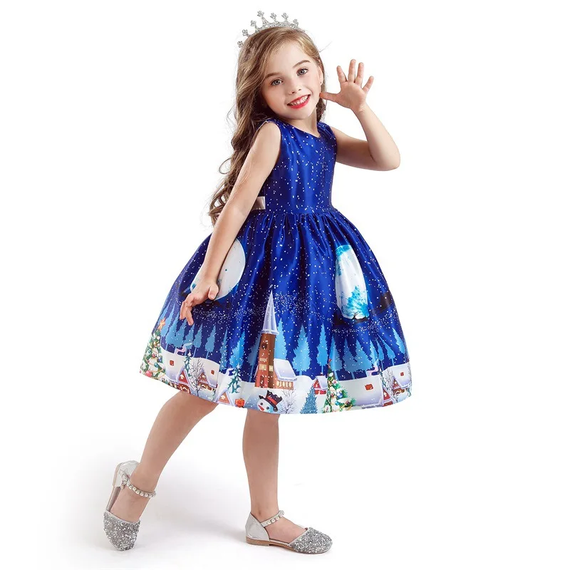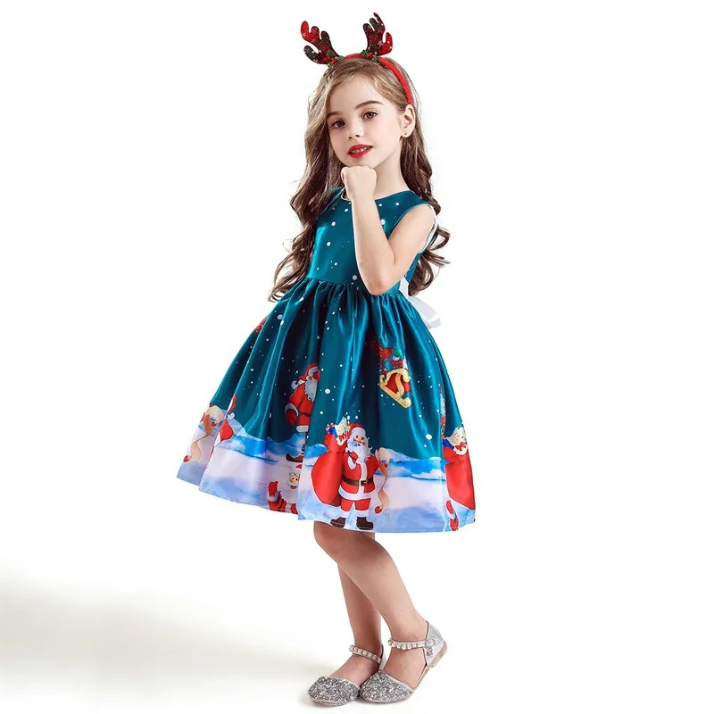 Рождественское платье 2019 г. Новое модное платье с вышивкой в виде снежинок и Санта-Клауса сатиновая юбка с рисунком для детей от 3 до 10 лет
