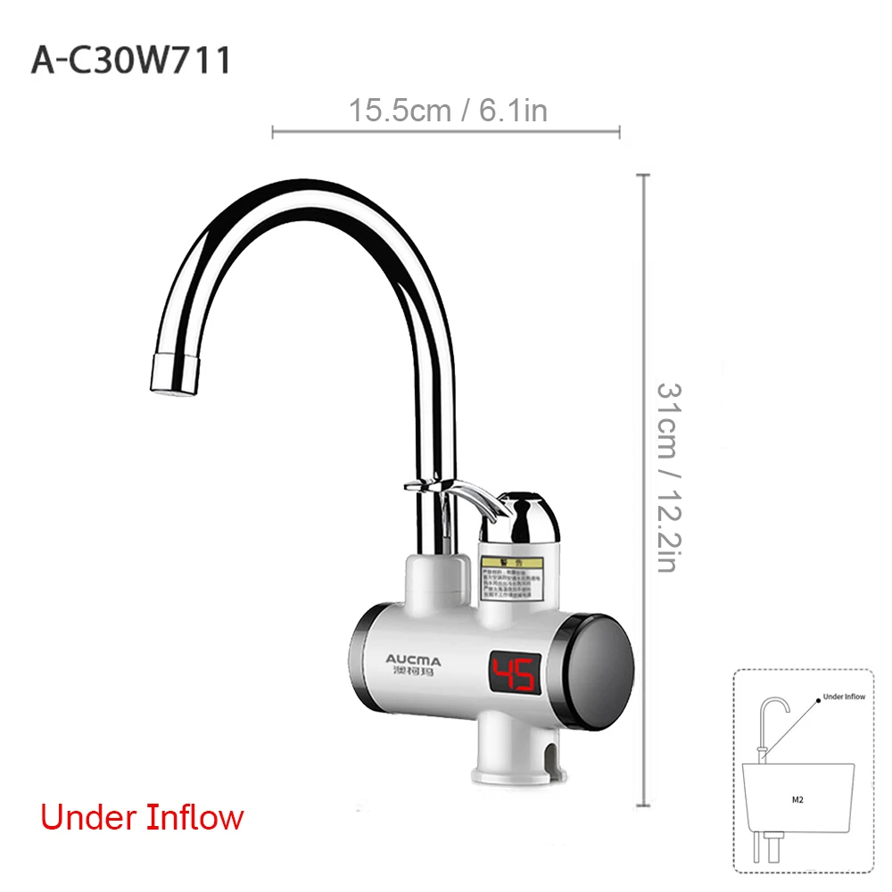 NOTICE: 1. Do not use the hot water switch directly when the water is frozen. Use cold water first, after cold water flowing normally,and then the using hot water. 2. For the first using, you must test cold water flowing well, and then hot water , otherwise it maybe can damage the faucet. 3. Suitable working temperature range: 0-60C 4. The power cord >= 1.5mm2, the front end meter or air switch >= 20A. as this it can work well. if not, maybe it would not work well. 5. After using hot water, use cold water for 3 seconds, which can better protect the faucet and prolong its service life. 6. When you placing orders, please choose the correct Plug, EU or UK. we have two types. if you don't know the differance, please contact us in time. Tips: If you have any questions after receiving the product, please contact us in time, we will try our best to help you solve every problem! Unique Performance: 1.Water and electricity system separation design, built-in anti-shock protection, and with blult-in explosion-proof device, stable performance, very safe, can feel free to use it. Many other products do not have this feature. 2.Ultra-low water pressure start-up design, can also be used in low water pressure areas 3.Ceramic valve core designing, long service life 4.Long life of heating tube, good heating effect, anti-scaling designing, pressure testing > 1500V 5.Plastic body; digital display 6.Easy using, 3 seconds for hot water 7.Easy installation, suitable for 99% kitchen or bathroom sinks. There are two methods to arrange the power cord. Package: 1pcs host 1pcs bent pipe 1pcs manual (maybe have a random gift of accessiories, but not included in the standard package)