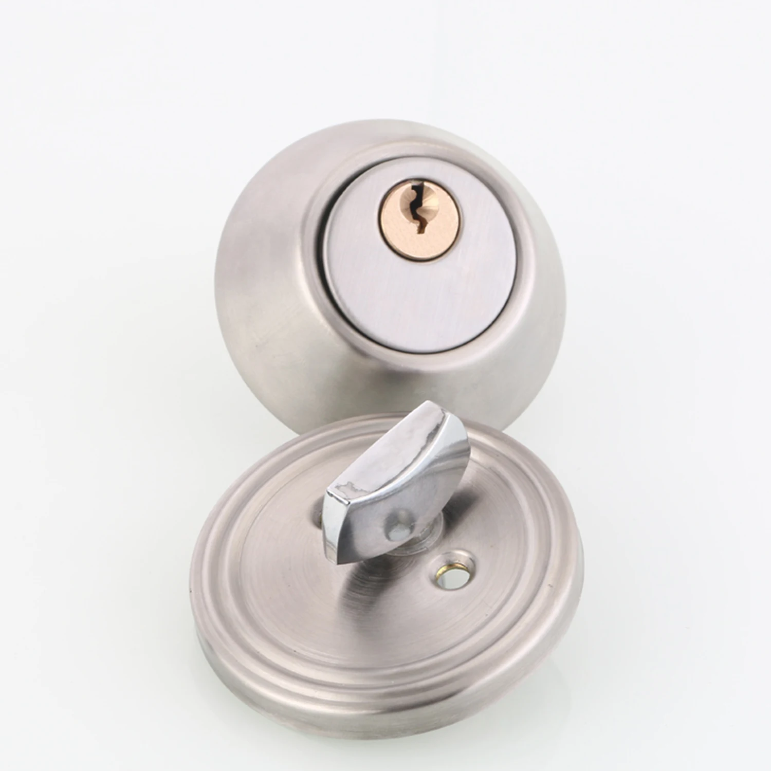[Privacy Lockset]The door knob sets can be locked and unlocked from the exterior with a key, and then locked or unlocked from the inside with an associated turn-button.