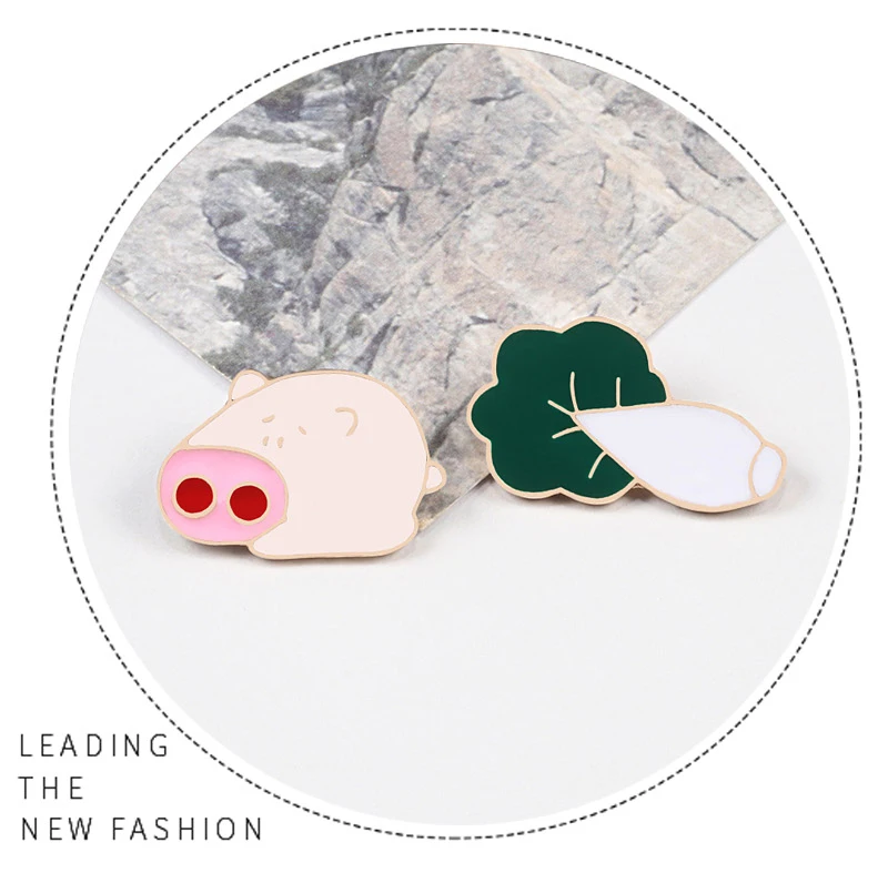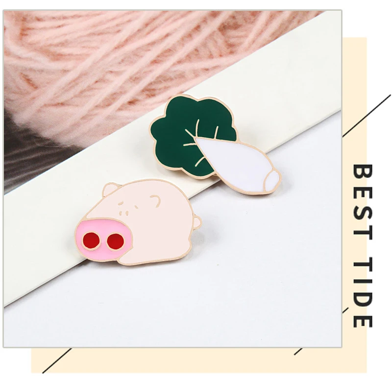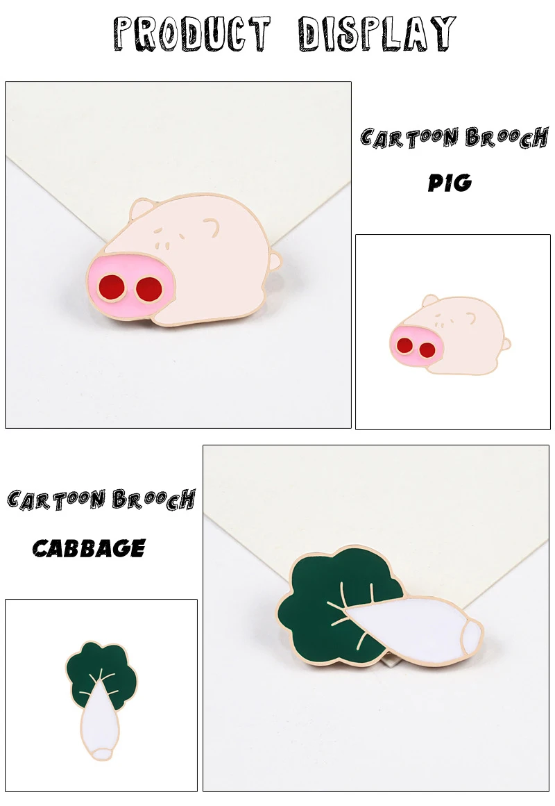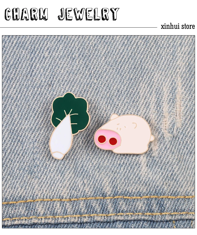 Забавная брошь в виде Свинки капусты, милые джинсовые куртки, кнопки, эмалированные значки, значки для женщин, девушек, отворот, булавки, Мультяшные животные, овощи, ювелирные изделия, подарки