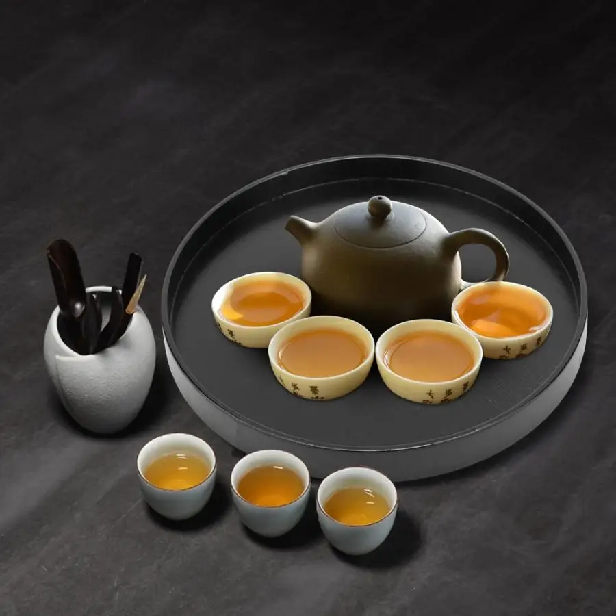 Деревянный поднос, деревянный круглый черный Противоскользящий поднос для чая, сервировочный стол для домашнего магазина, офисный бар