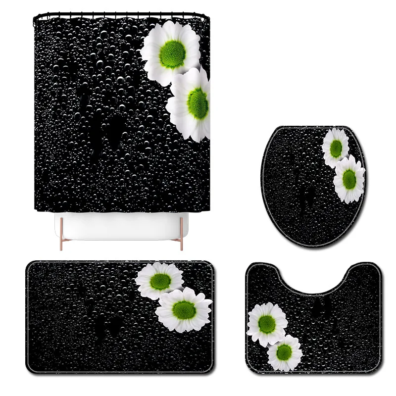 Набор 1 (набор из 4 шт.):1 * коврик для ванной, комплект из 3 предметов + 1 шт. * занавеска для душа + Крючки
