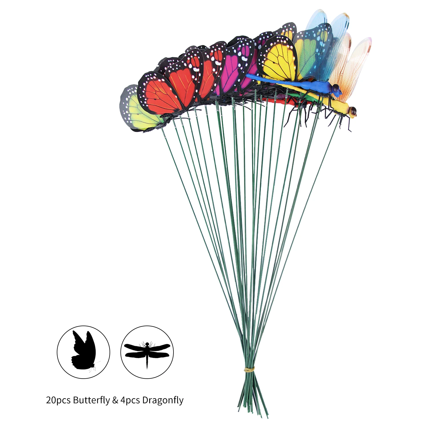[Яркое украшение]Бабочки и стрекозы прикреплены к небольшой пружине в верхней части палочки, чтобы они могли свободно и верно перемещаться по жизни на ветру, делая ваши растения выглядят намного лучше.