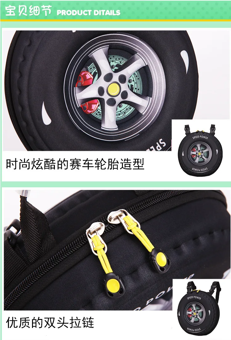 Индивидуальная креативная 3D сумка для шин, новый детский рюкзак с мультипликационным принтом, милая детская сумка на колесиках, диагональная упаковка, 20161115, 24X13X24cm