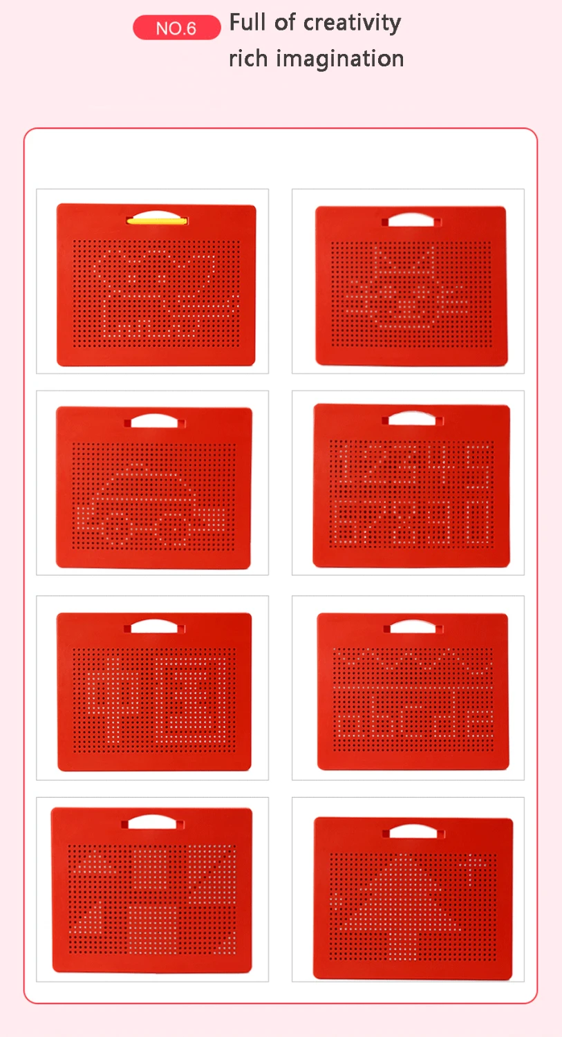 Описание: Цвет: черный/красный Материал: АБС + стальной шарик + магнит Маленький -- доска из бисера: 21х17см Шарик: 19x20 (380 магнитов) Подходящий возраст: 3-6 лет (для детей)/7-14 лет (для подростков) Использование: детские игрушки, магнитные Стальные Бусины, пластиковая доска Особенности: -Обучающий инструмент для развития интеллекта и креативности вашего ребенка * Использует магнитное свойство для рисования форм, букв, изображений на поверхности * Неудержимый и увлекательный обучающий инструмент для развития интеллекта ваших детей, направляющий вашу дочь или сына на путь создания -С магнитным стилусом, чтобы всплыть Стальные Бусины -Со стилусом для удобного хранения Упаковочный лист: 1 х доска для рисования Стилус-1 шт.