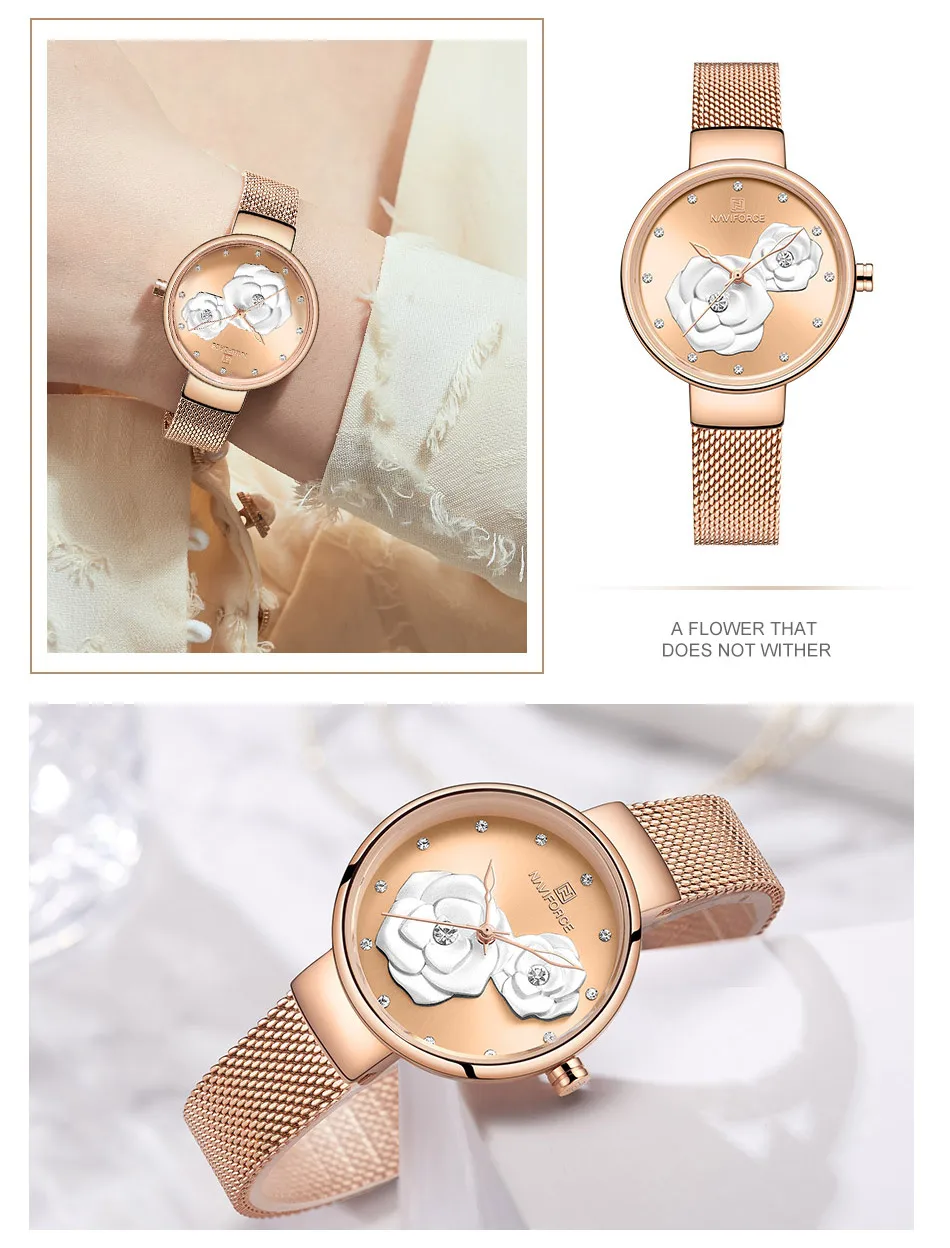 Описание 100% новые и высококачественные Роскошные дизайнерские женские наручные часы Водостойкий Японский кварцевый механизм Технические характеристики Материал корпуса: сплав Диаметр корпуса: 32 мм Толщина корпуса: 9,7 мм Длина ремешка (включая чехол): 225 мм Ширина ремешка: 13 мм Что входит в комплект 100% новые часы naviforce 1 x Роскошные дизайнерские женские наручные часы NAVIFORCE