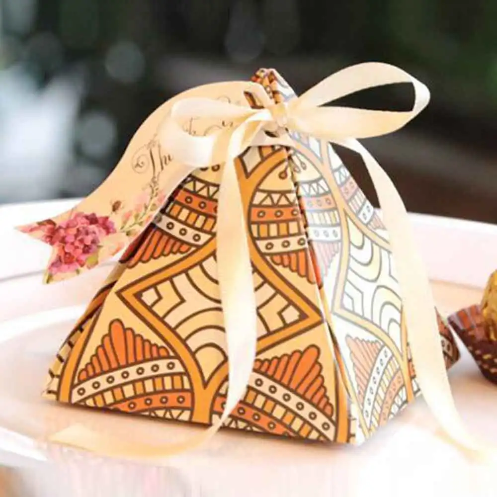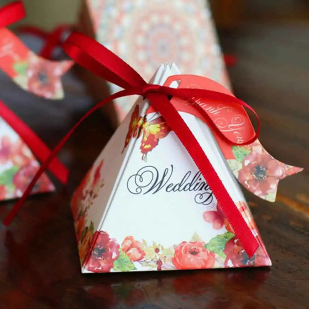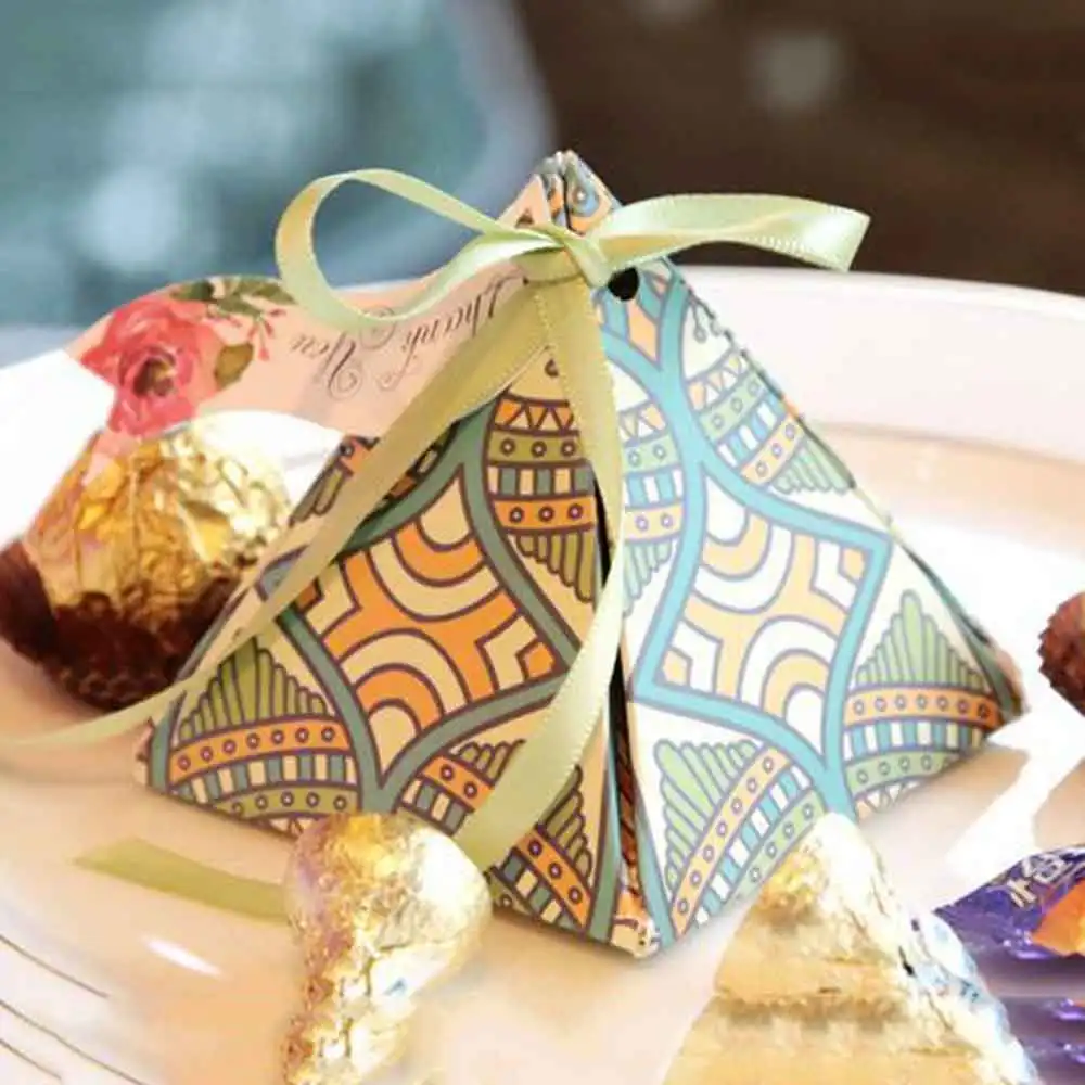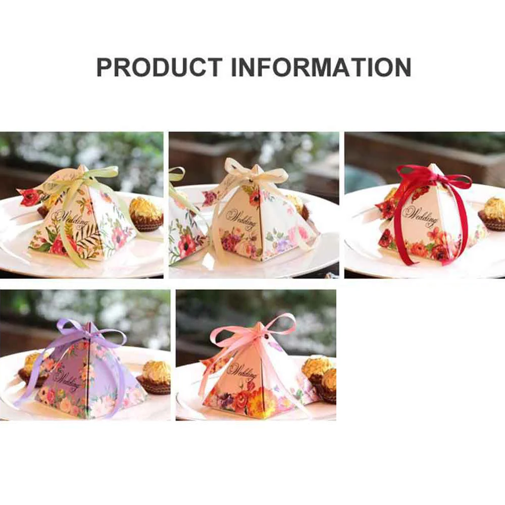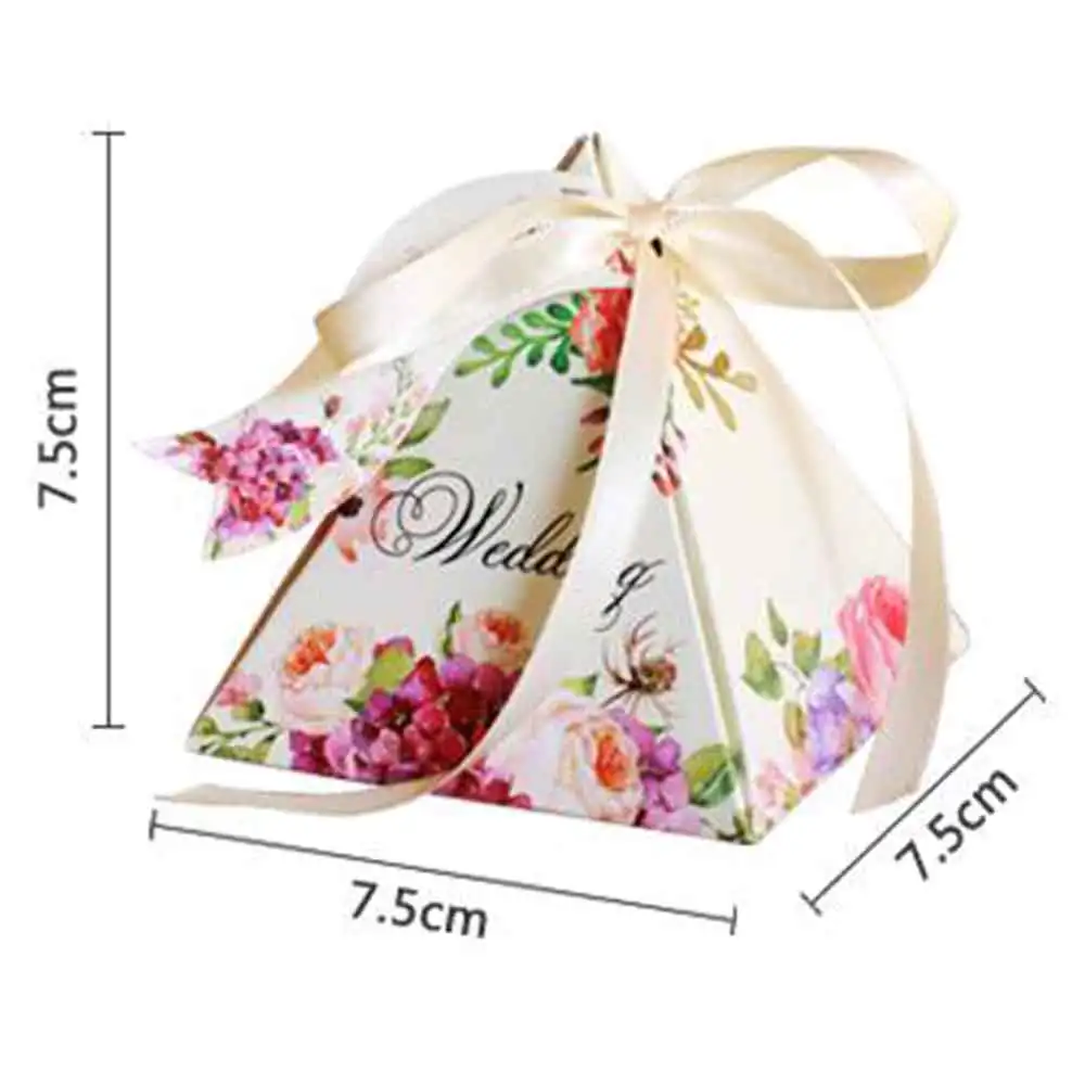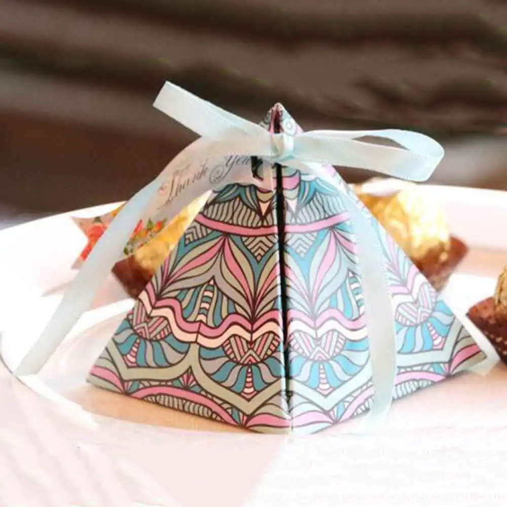 50 шт., креативная коробка для конфет, для детского душа, треугольная пирамида, свадебные сувениры, Подарочная коробка, вечерние принадлежности Bomboniera