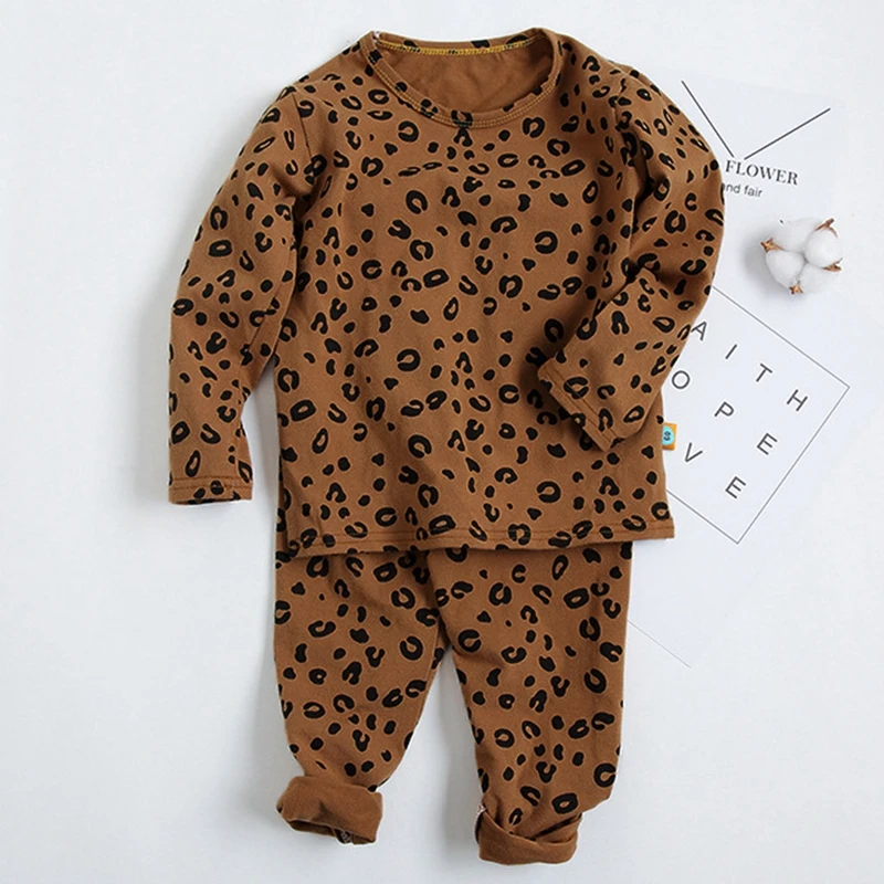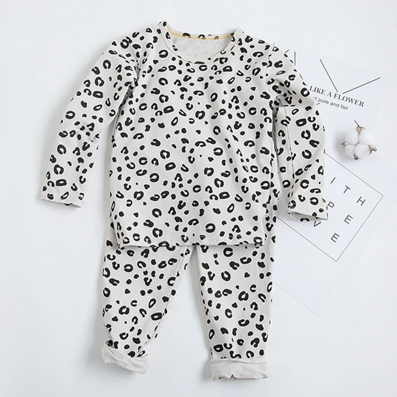 Новые детские леопардовые пижамы для маленьких девочек и мальчиков, топы с длинными рукавами, штаны, брюки, одежда для сна домашняя одежда для маленьких девочек