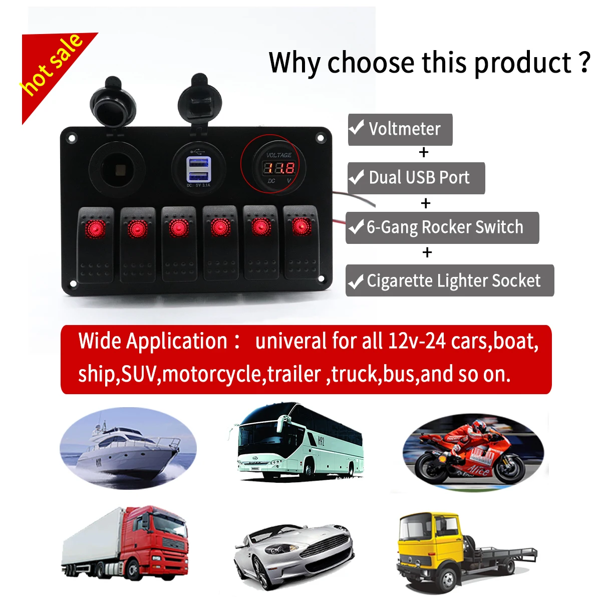 1,6-gang светодиодный выключатель на один светильник, может управлять электрическим оборудованием внутри автомобиля по желанию. Различные конструкции электронного оборудования позволяют переключателю контролировать с первого взгляда. 2.100% абсолютно новая и высококачественная клавишная панель переключателя. Высококлассная клавишная панель, светодиодный светильник. Легко устанавливается, может устанавливаться горизонтально или вертикально, очень удобно в использовании. 3. С наклейками на этикетку автомобиля и лодки, соответствующие инструкции управления могут быть прикреплены к переключателю в соответствии с вашими потребностями. Это идеальный выбор, если вам нужна клавишная панель переключателя. 4. Эта клавишная панель переключателя предназначена для управления электрооборудованием внутри автомобиля по желанию. 5. Широко используется для автомобилей 12V-24V, RV, караваны, трейлеры, автобусы, лодки, яхты, морские и т. Д.