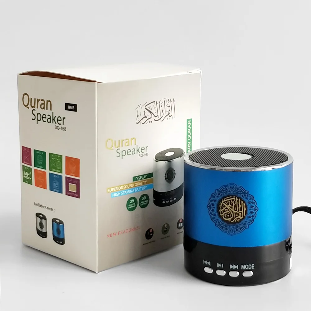 1. Воспроизведение любого Корана суры нажатием кнопки на пульте дистанционного управления 2. Воспроизведение Корана аудио слова словом. Легко для изучения Корана таким образом. 3. Воспроизведение Корана. Выберите свой родной язык для понимания Корана. 4. Воспроизведение MP3 аудио. Поддержка любых аудио MP3 файлов. 5. Доступны комбинированные и одиночные режимы. Для прослушивания Корана аудио и любого перевода, пожалуйста, нажмите кнопку РЕЖИМ, для одного режима, нажмите еще раз. 6. Функция fm-радио. 7. Легко выбрать номер суры по номерам на пульте дистанционного управления 8.Famouse Qari (реквизиты) 9. Несколько языков (переводчики) 10.Tafseer 11. Выберите Surah 12. Полный цифровой Коран 13. Легко заменить перезаряжаемый аккумулятор 14.HD-голос 15. Светодиодный дисплей