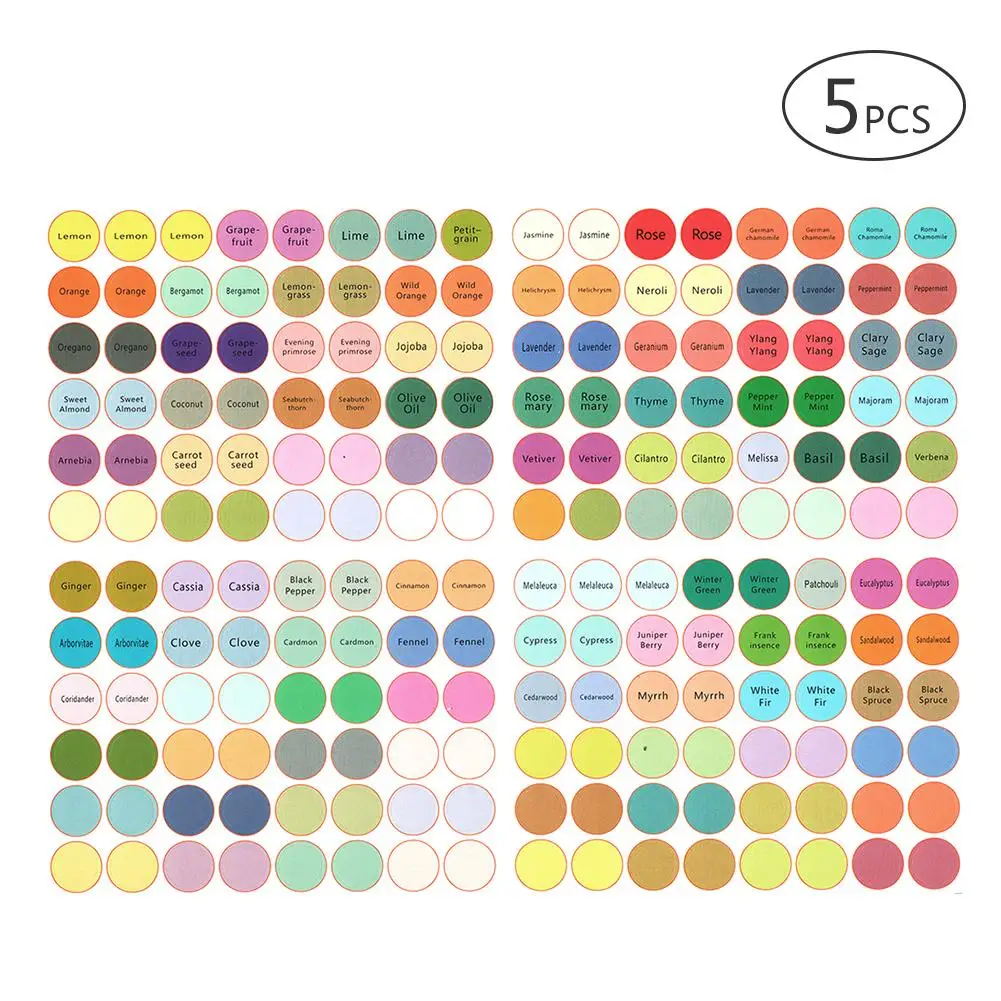 5 листов наклейки для бутылки эфирного масла