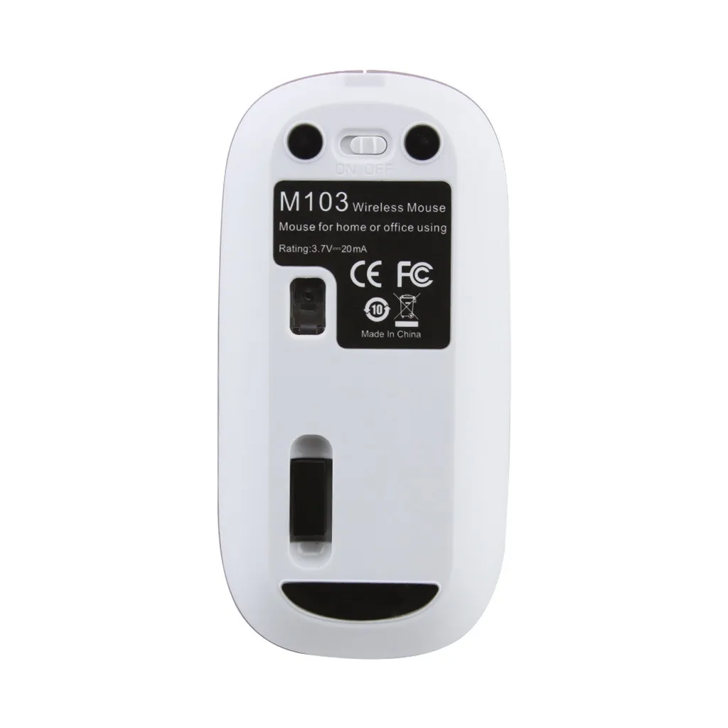 Material: ABS + metal Transmission mode: 2.4G Lighting: None Key: 5 keys DPI: 800-1200-1600 DPI Operating mode: photoelectricity Transmission Distance: 15m Battery capacity: 500 mA Mute or not: Yes. Applicable systems: all support Go to sleep: 30 minutes Wake up: Move the mouse or key Operating Method: Plug in 2.4 G ReceiverPackage includes: