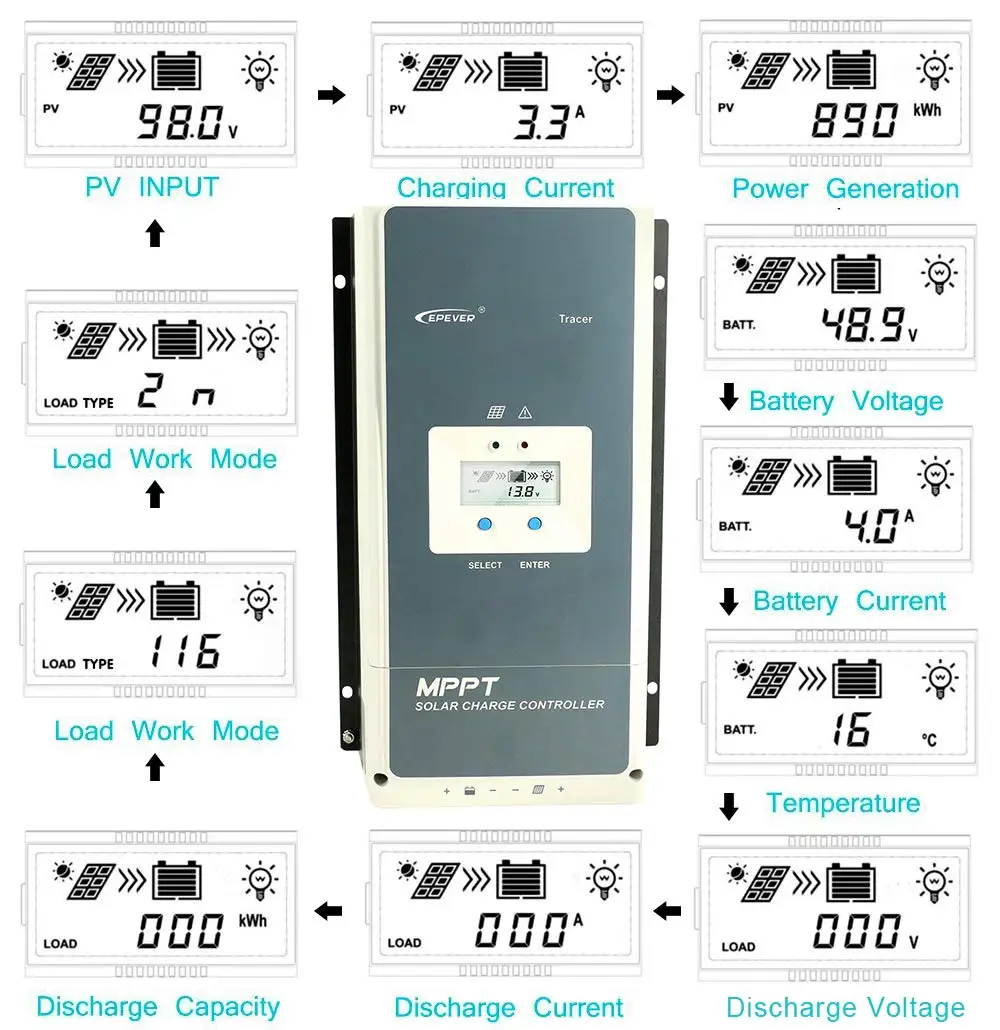 Это Контроллер солнечного заряда 100% Ture EPever MPPT, эффективность отслеживания MPPT может быть выше 99.5%. Он может заряжать 12 В 24 в 36 в 48 в свинцово-кислотный (герметичный/гелевый/затопленный/) аккумулятор, поддерживает до 8 единиц параллельно. Он очень мощный!