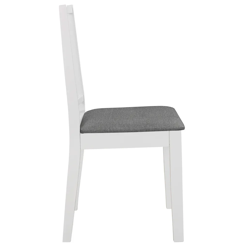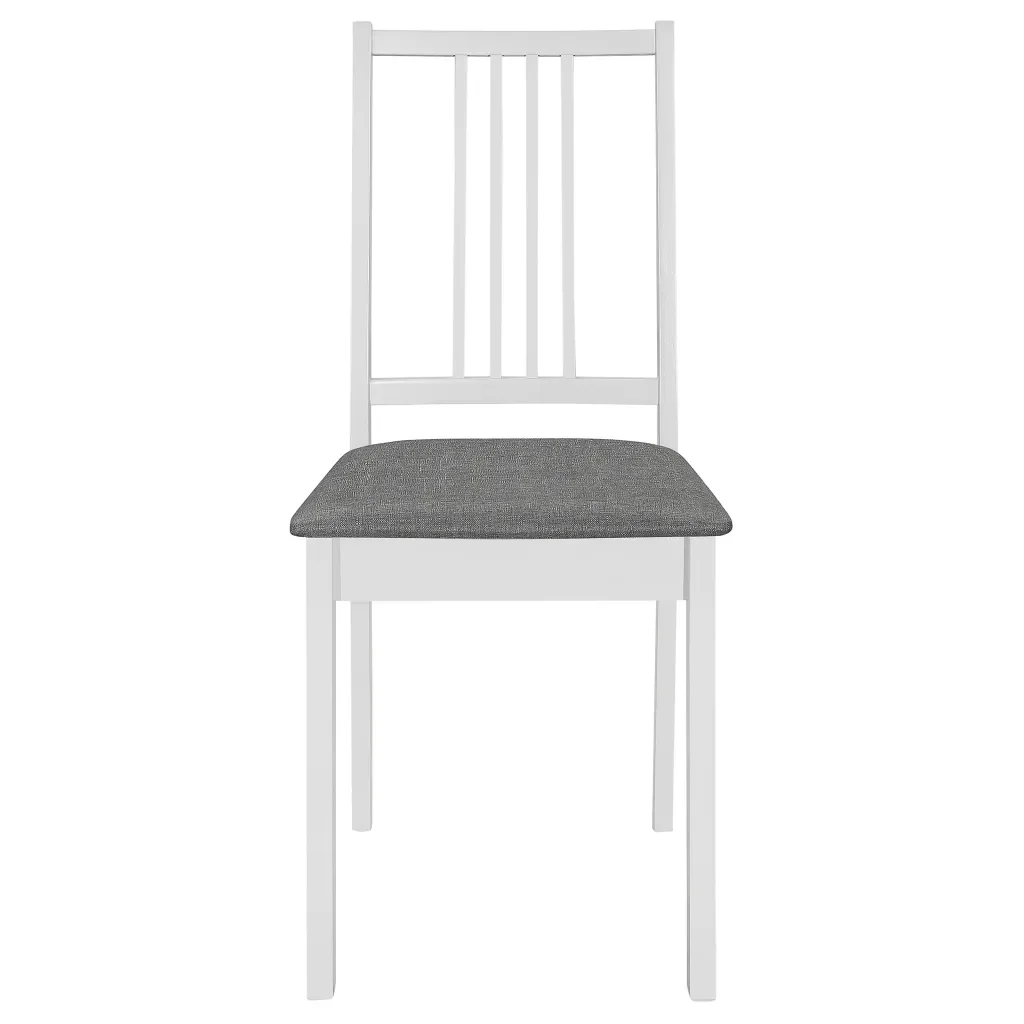 Обеденного стола: Цвет: белый/серый Размеры: (80-120) x 80x74 см (Ш x Г x В) Материал: твердая резина, дерево + мдф столешница Таблица может быть увеличена от 80 до 120 см Столовые стулья: Цвет: белый и серый Материал стула: массивное резиновое дерево Материал подушки: 100% полиэстер Размеры: 40x49x88,5 см (I x D x H) Ширина сиденья: 40 см Глубина сиденья: 40 см Высота сиденья от земли: 44 см Доставка включает 1 обеденный стол и 4 стула с подушками