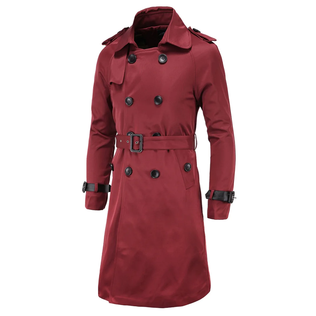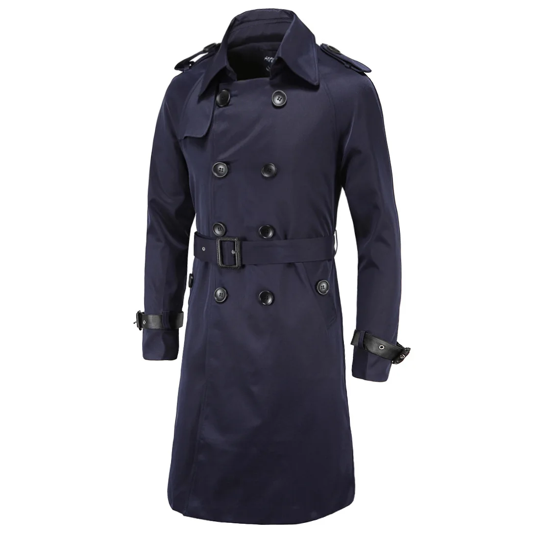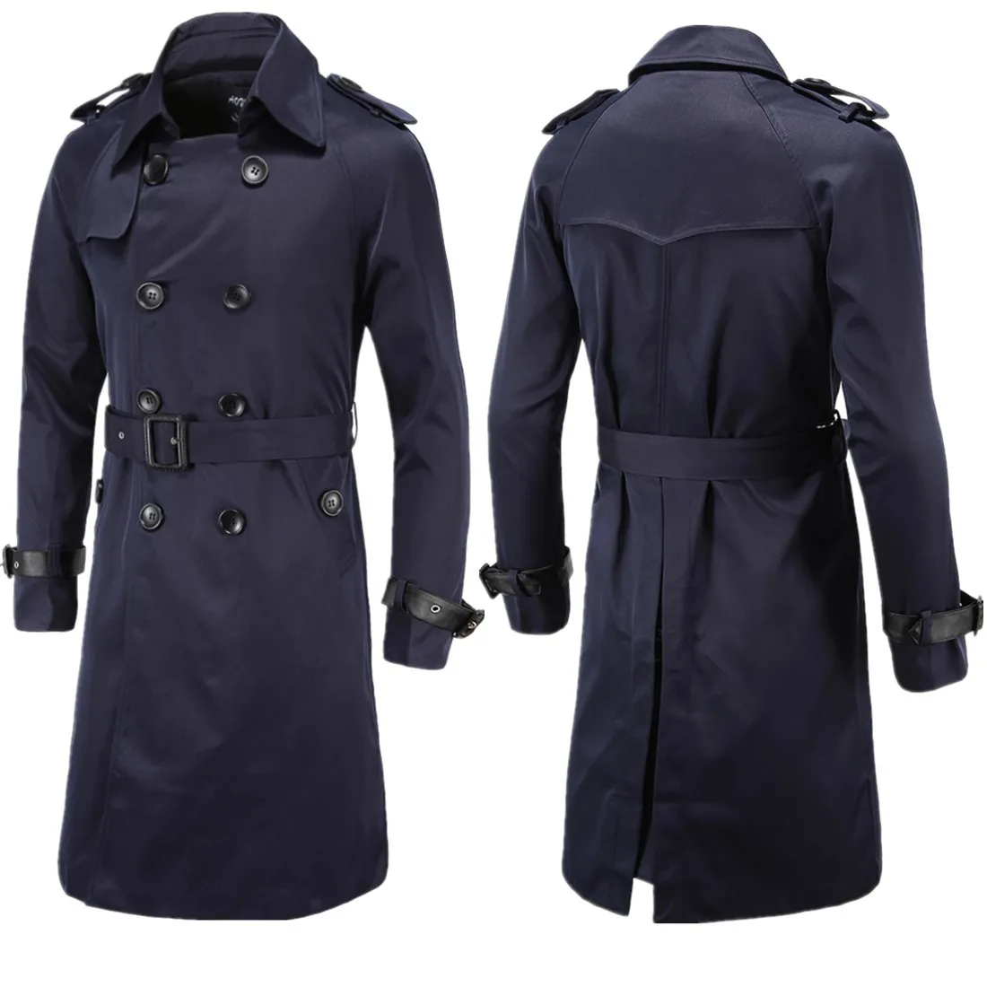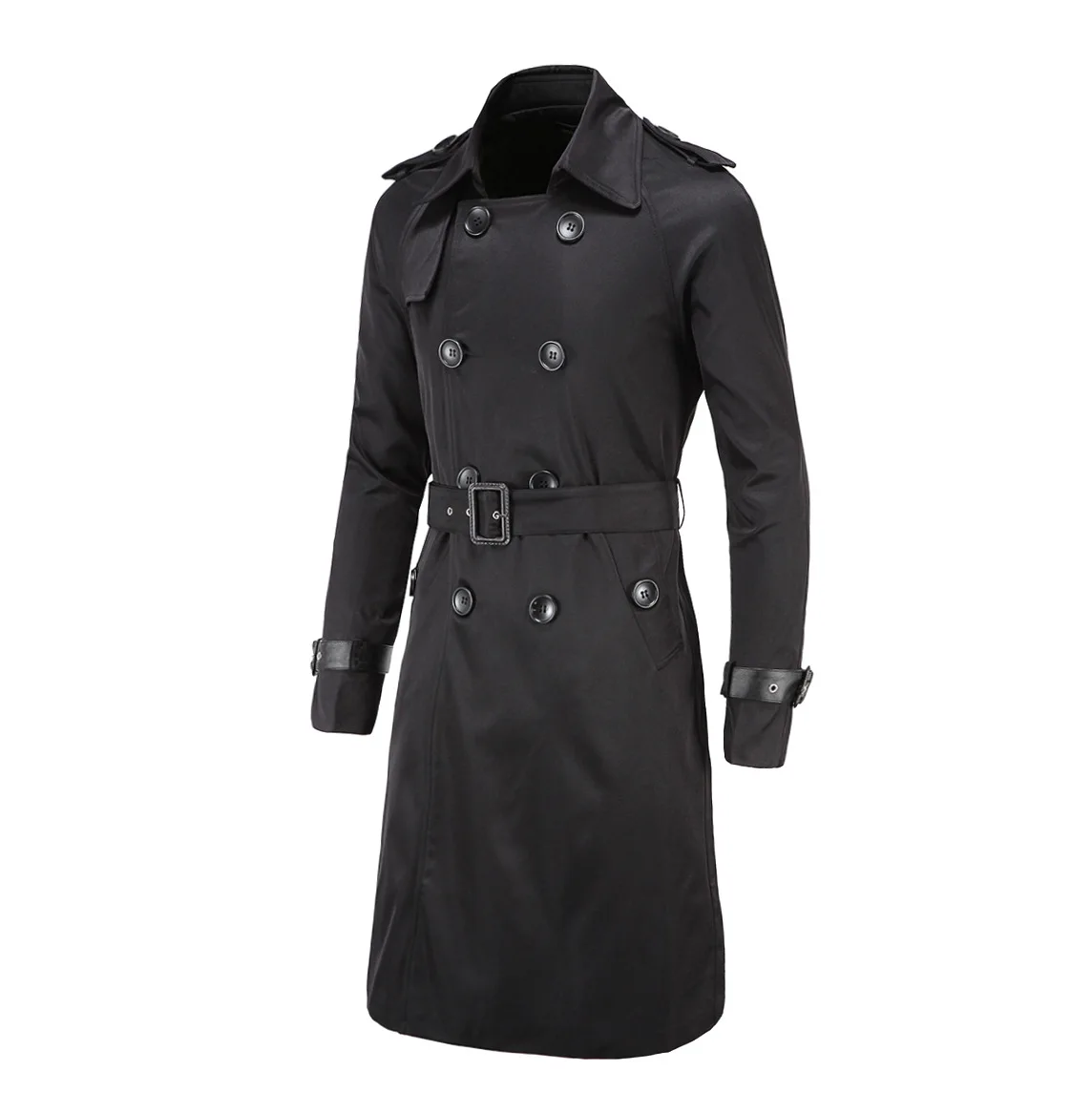 Мужской плащ, британский стиль, классический Тренч, куртка, двубортный, длинный, тонкий, верхняя одежда, регулируемый ремень, кожаный рукав, ремень