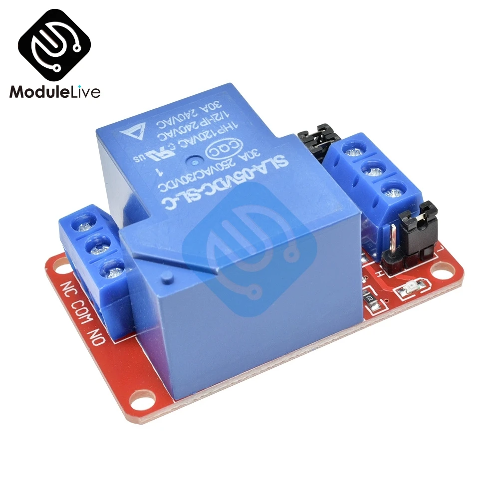 Описание: 5 V 30A 1-канальный релейный модуль с Оптрон H/L Уровень Тригер Описание: 30A релейный модуль, нормально открытый интерфейс Максимальная нагрузка: AC 250 V/30A, DV 30 V/30A Изоляция оптической муфты, способность вождения сильная, стабильная производительность; ток триггера 5ма Модуль может быть установлен высоким или низким уровнем триггера перемычкой Индикатор питания Светильник (зеленый), релейный индикатор состояния светильник (красный) Размер модуля: 50 мм * 33 мм * 24 мм Технические параметры: Версия напряжения: 5 В Статический ток: 5 мА Рабочий ток: 190mA Ток срабатывания: 2-4mA Интерфейсный модуль Технические характеристики: DC +: источник питания постоянного тока положительный полюс DC-: источник питания постоянного тока отрицательный полюс В: сигнал запуска pin JD +: реле контроля напряжения Положительный JD-: реле отрицательного напряжения управления DC + и JD + коротковат перемычкой, DC-и JD-коротковат с перемычкой, это такое же напряжение между триггерным терминалом и релейным терминалом управления Высокий и низкий уровень выбора режима триггера. Перемычка и l-контактное соединение, в штыре низкий уровень триггера перемычка и h-контактное соединение, в штыре высокий уровень триггера Нормально закрытый контакт (NC): реле нормально закрытый контакт Общий контакт (COM): релейный Общий контакт Нормально открытый контакт (нет): нормально открытый контакт реле