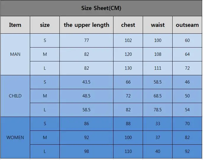 Таблица размеров