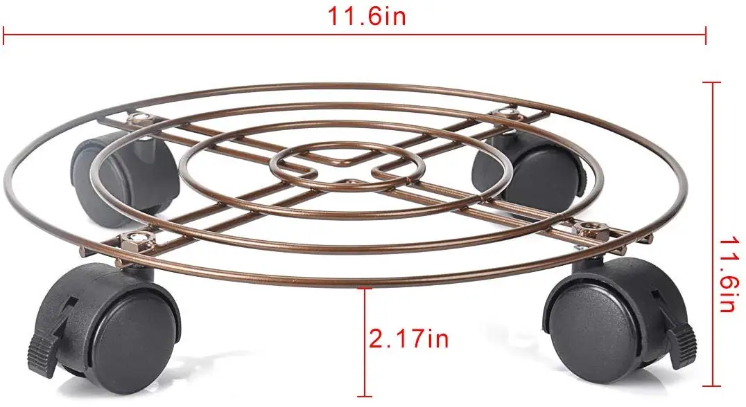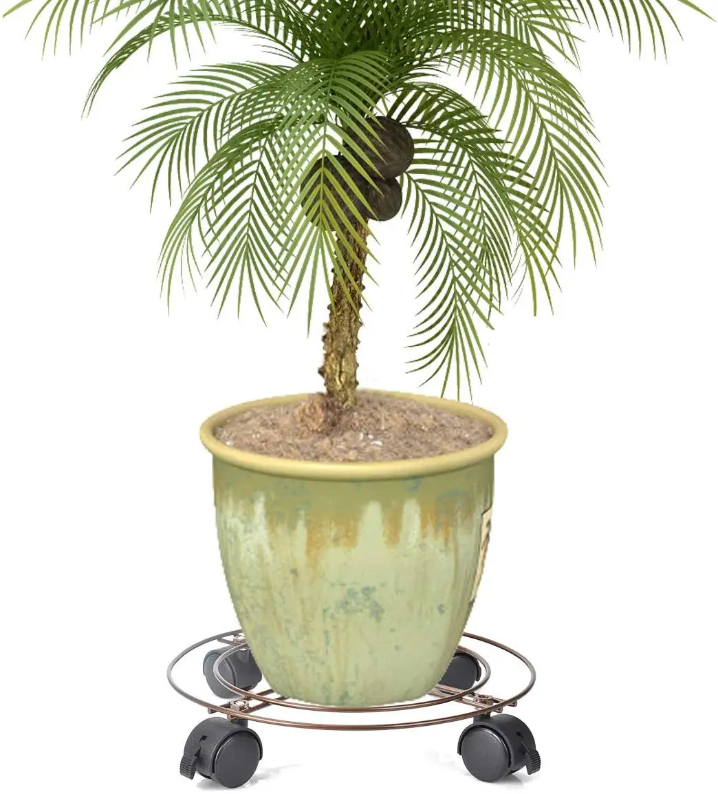 -Большая подставка для растений на колесах может блокировать ролики, предотвращая прокатку. -360 универсальных колес позволяет перемещать большие цветочные горшки в любом направлении. -Легко переносить тяжелые растения вокруг вашего дома или сада, не повреждая пол круглой железной подставкой.