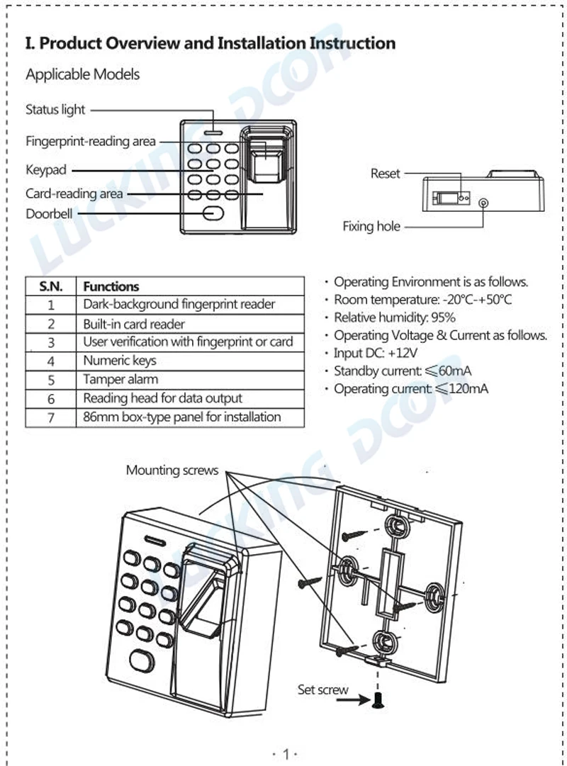 1,1000 отпечаток пальца, карта 1000 и пароль 1000
