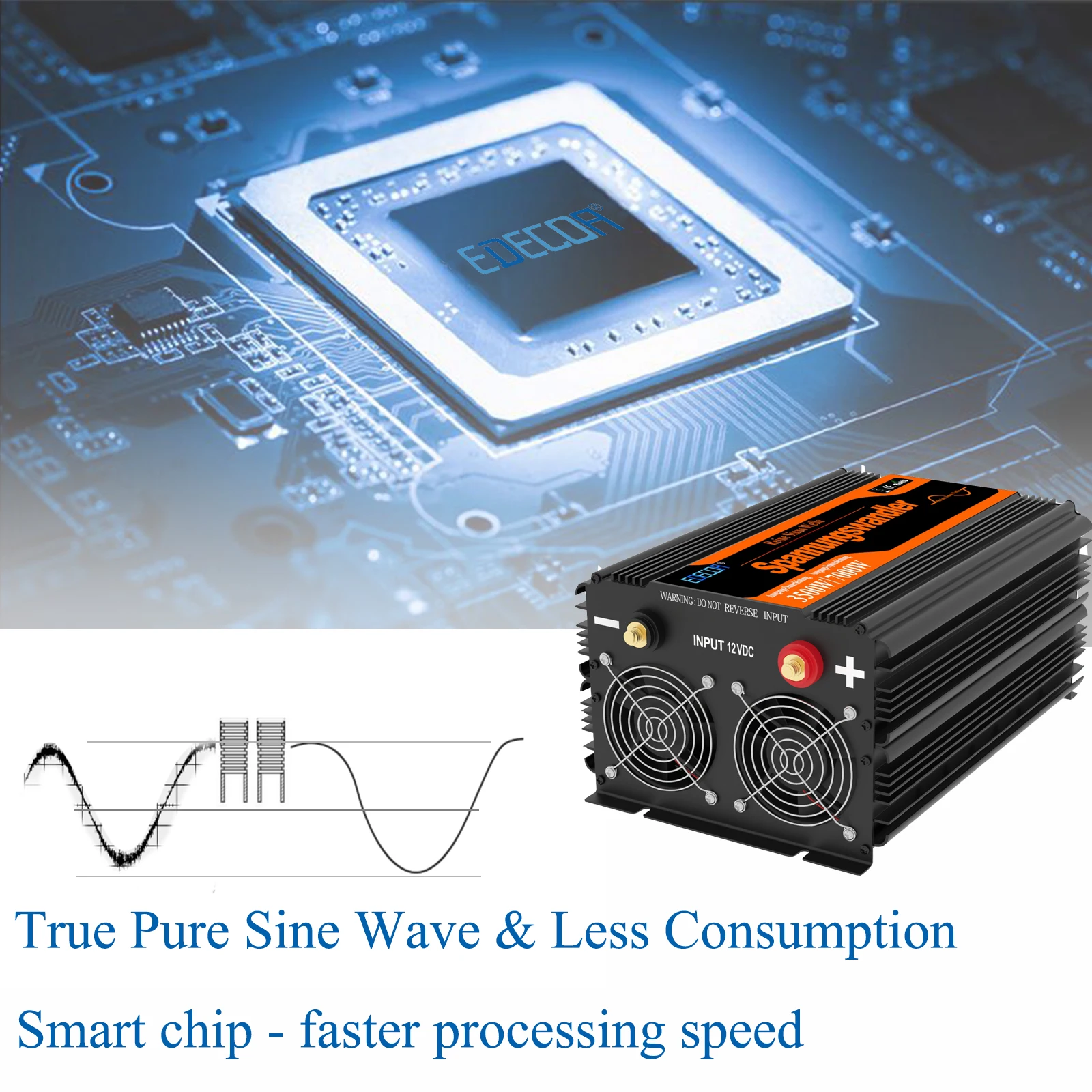 Дизайн умных фанатов. Чтобы уменьшить ненужные отходы заряда батареи и сохранить тишину, вентилятор не запустится до тех пор, пока внутренняя температура не составит 45 ℃ +. Выше 75 ℃, инвертор питания перестанет работать, чтобы защитить автономный инвертор