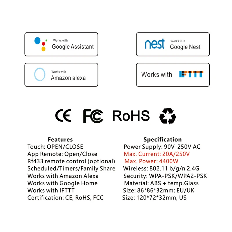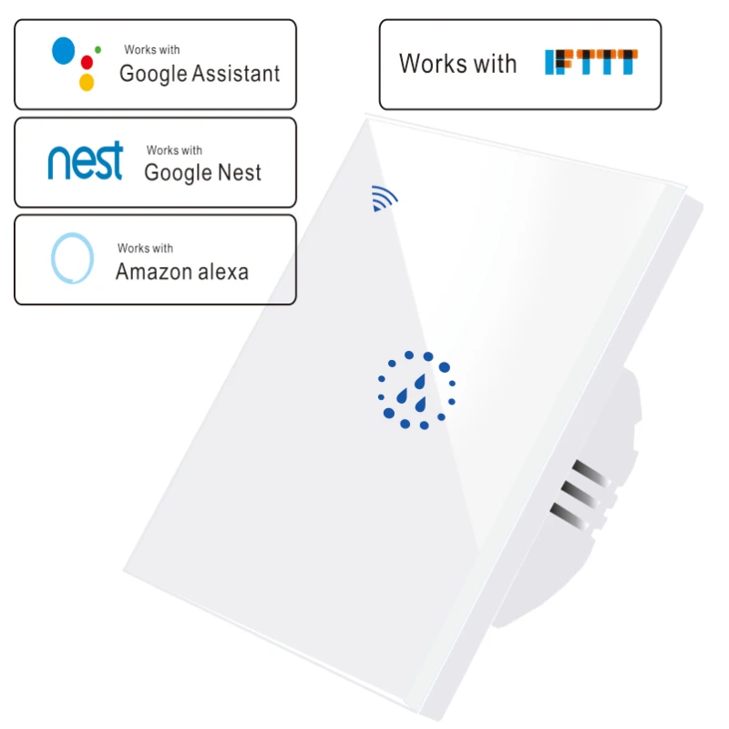 Переключатель может быть совместим с мобильной системой iOS и Android, работает с Amazon Alexa / Echo, Google Home.