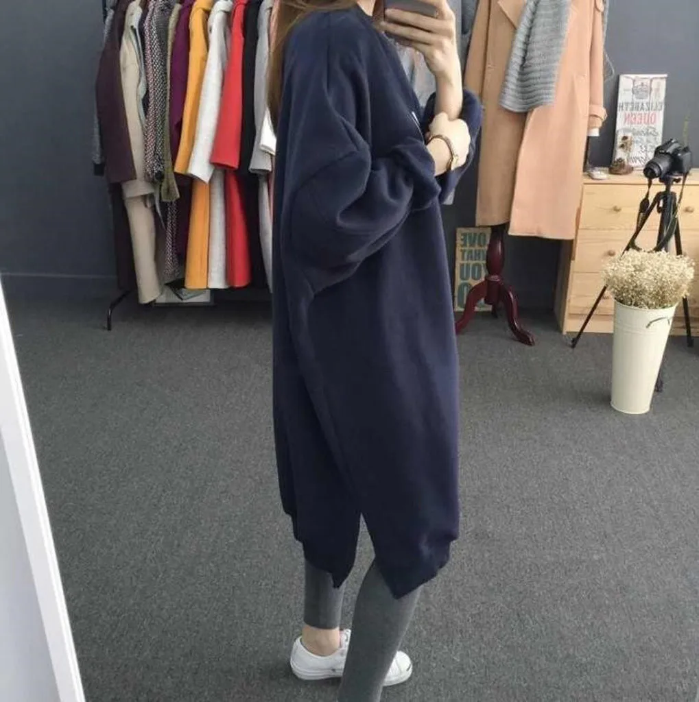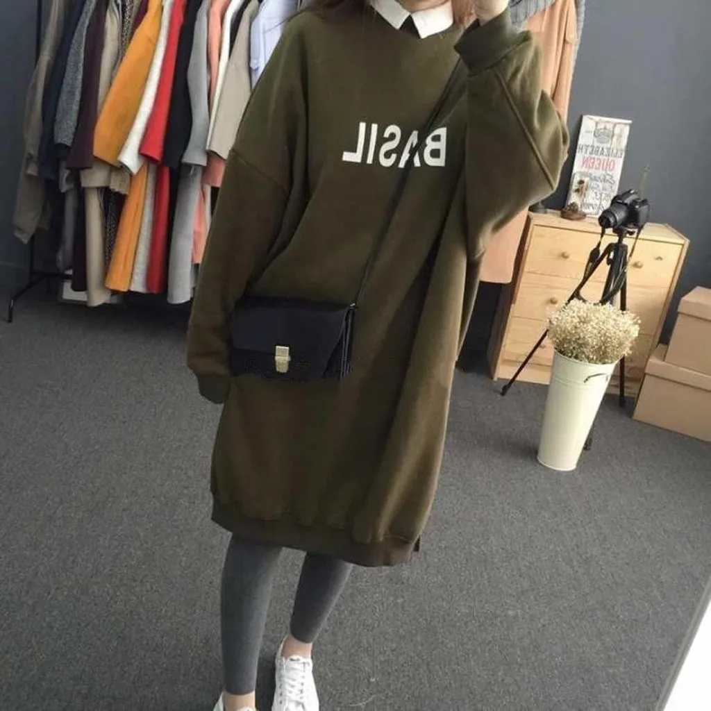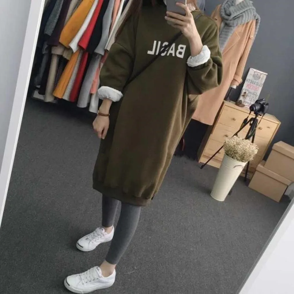 Модная женская Повседневная кашемировая толстовка средней длины с круглым вырезом и длинным рукавом