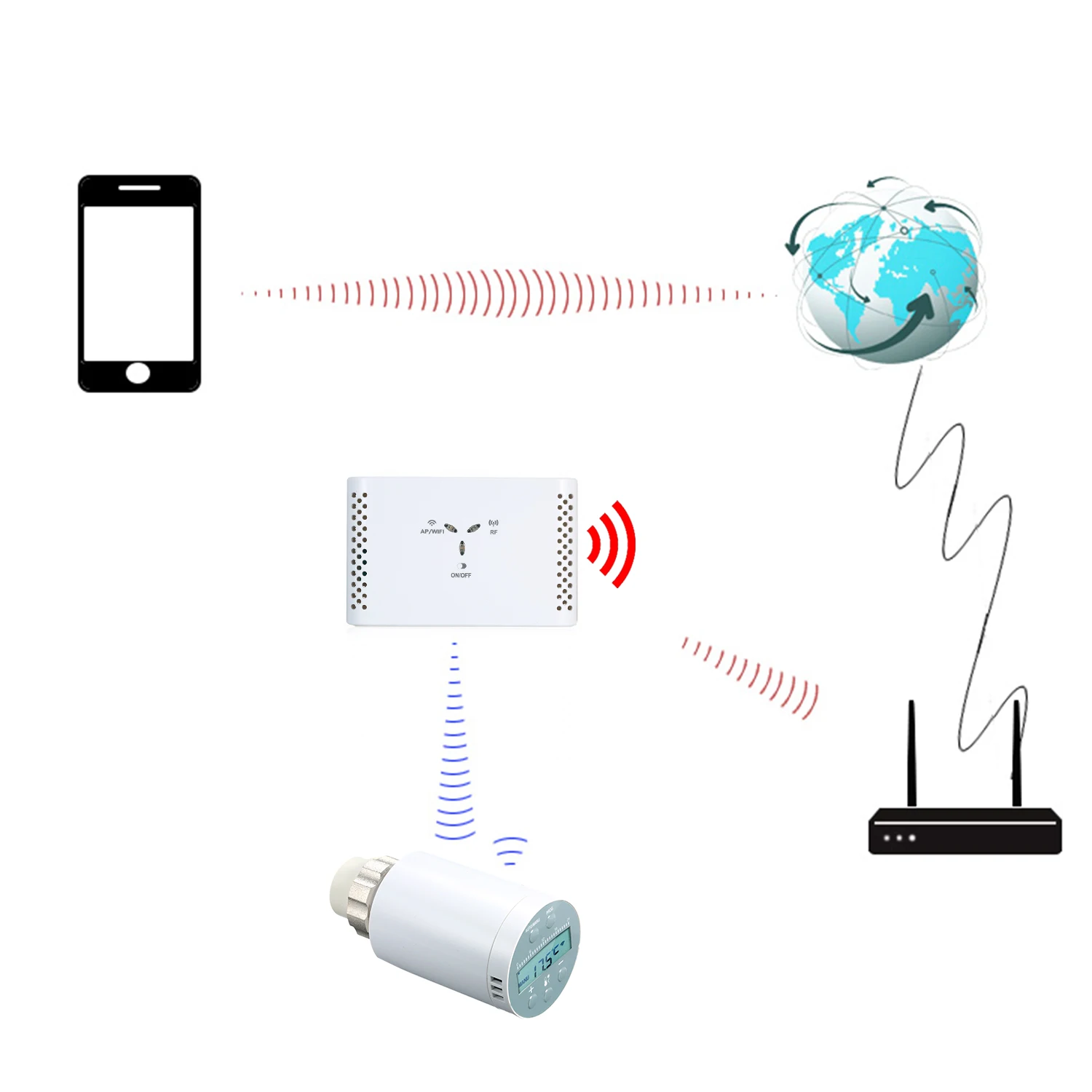 Шлюз-это мощный ресивер для SEA801-APP термостата для реализации дистанционного управления со смартфона, а SEA801-APP-это стильный и точный программируемый контроллер TRV, предназначен для самостоятельного управления отопительными радиаторами, а также для удаленного мониторинга с помощью телефона. Он крепится к новым или существующим термостатическим клапанам радиатора (короткое имя --- TRV), и в соответствии с серией запрограммированных соединений для контроля температуры в помещении.