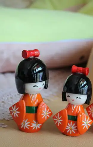 2pcs New Cute Handmade Oriental Japanese Dark Red Kokeshi Girls Wooden Dolls