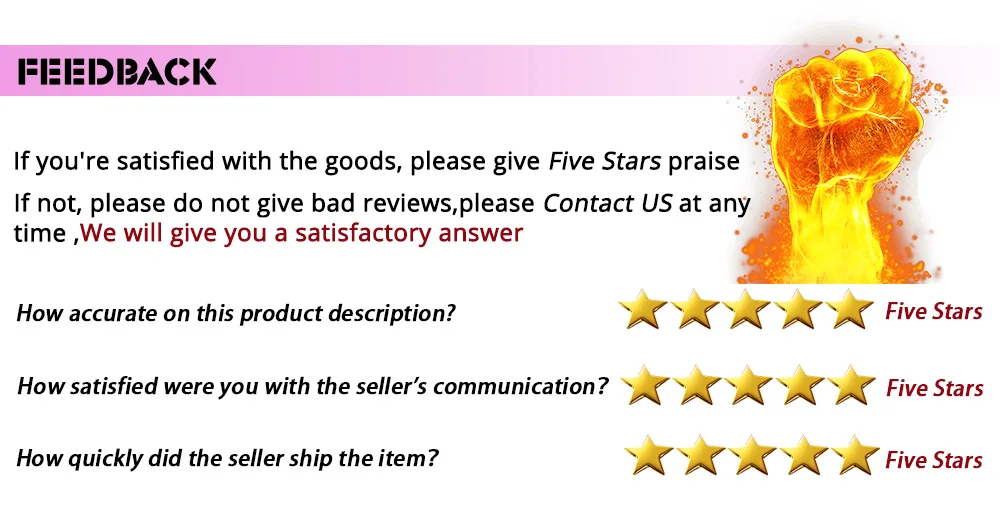 4. Мы рады помочь им решить любую проблему, пожалуйста, свяжитесь с нами, прежде чем оставлять отрицательный отзыв.